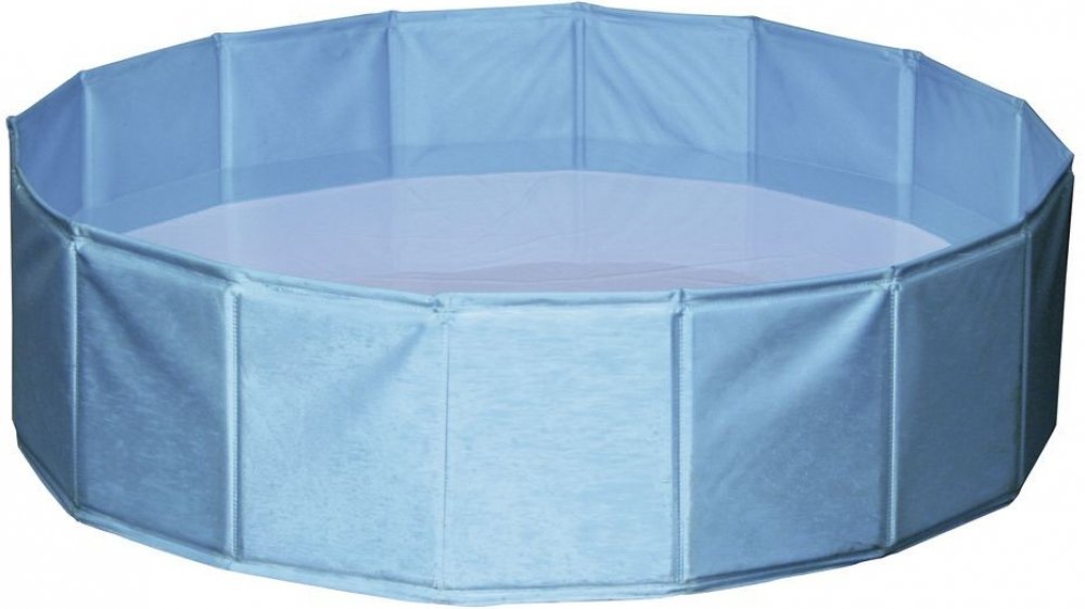 Skládací bazén pro psy, z odolného plastového materiálu, montáž/demontáž bez čerpadla, praktická výpusť na dně bazénu, strukturované dno proti uklouznutí, stabilní vyztužené boční stěny, rozměry Ø80x20 cm.