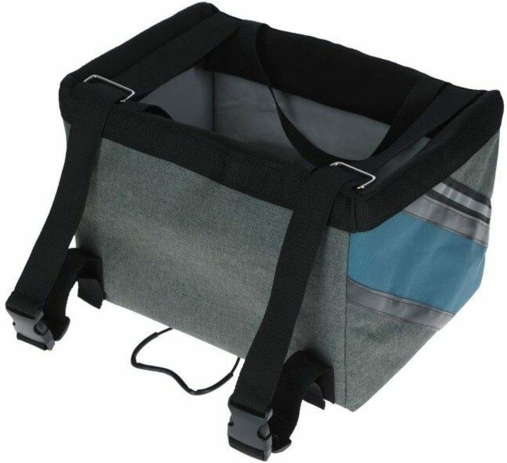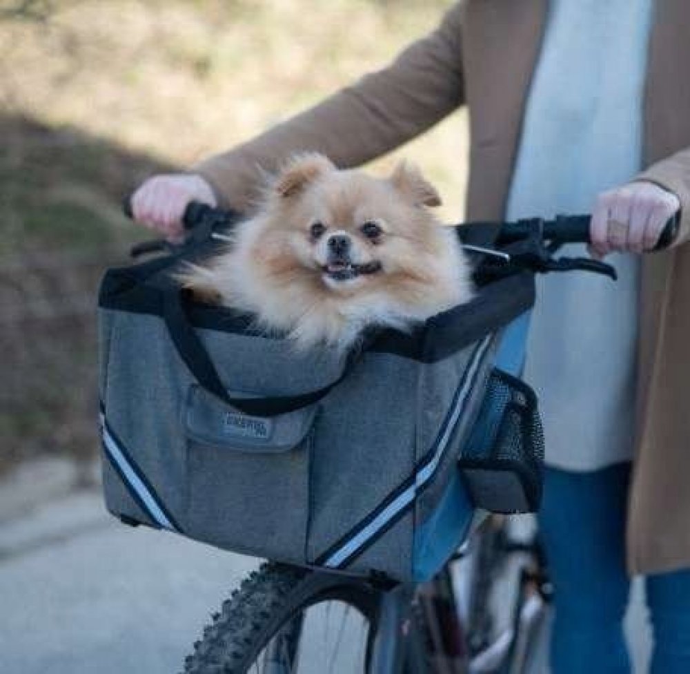 Taška Vás ohromí svou výbavou a skvělým provedením. Nastavitelné popruhy usnadní fixaci tašky na řídítkách kola. Aby byl při cestě mazlíček v bezpečí, můžete ho připnout na krátké vodítko. Vyztužené stěny tašky zajistí mazlíčkovi bezpečí a pohodlí, navíc obsahují bezpečnostní odrazky, kapsu na láhev s vodou a úložné přihrádky, do kterých lze uložit pamlsky nebo vodítko. Taška na kolo má vyztuženou základnu a praktický distanční držák, který brání kymácení tašky a jejímu převrácení. Praktická podložka s plyšovým potahem (potah lze sundat a prát v pračce) poslouží jako pohodlné místo na sezení. V případě, že zrovna nikam se psem necestujete, můžete tašku snadno složit a uschovat.