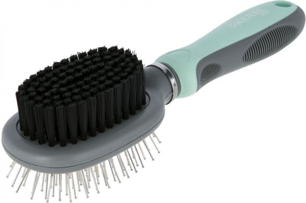 Oboustranný flexibilní kartáč pro psy s ergonomickou rukojetí a gumovými lamelami pro snadnou manipulaci. Tento praktický kombinovaný kartáč je vhodný pro všechny délky srsti. Zaoblené kovové hroty šetrně pročešou vrchní srst i podsadu a měkké syntetické štětiny zbaví srst i těch nejmenších prachových nečistot a srst zůstane krásně lesklá a provzdušněná. Vyčesávání s tímto kartáčem jde samo, díky...