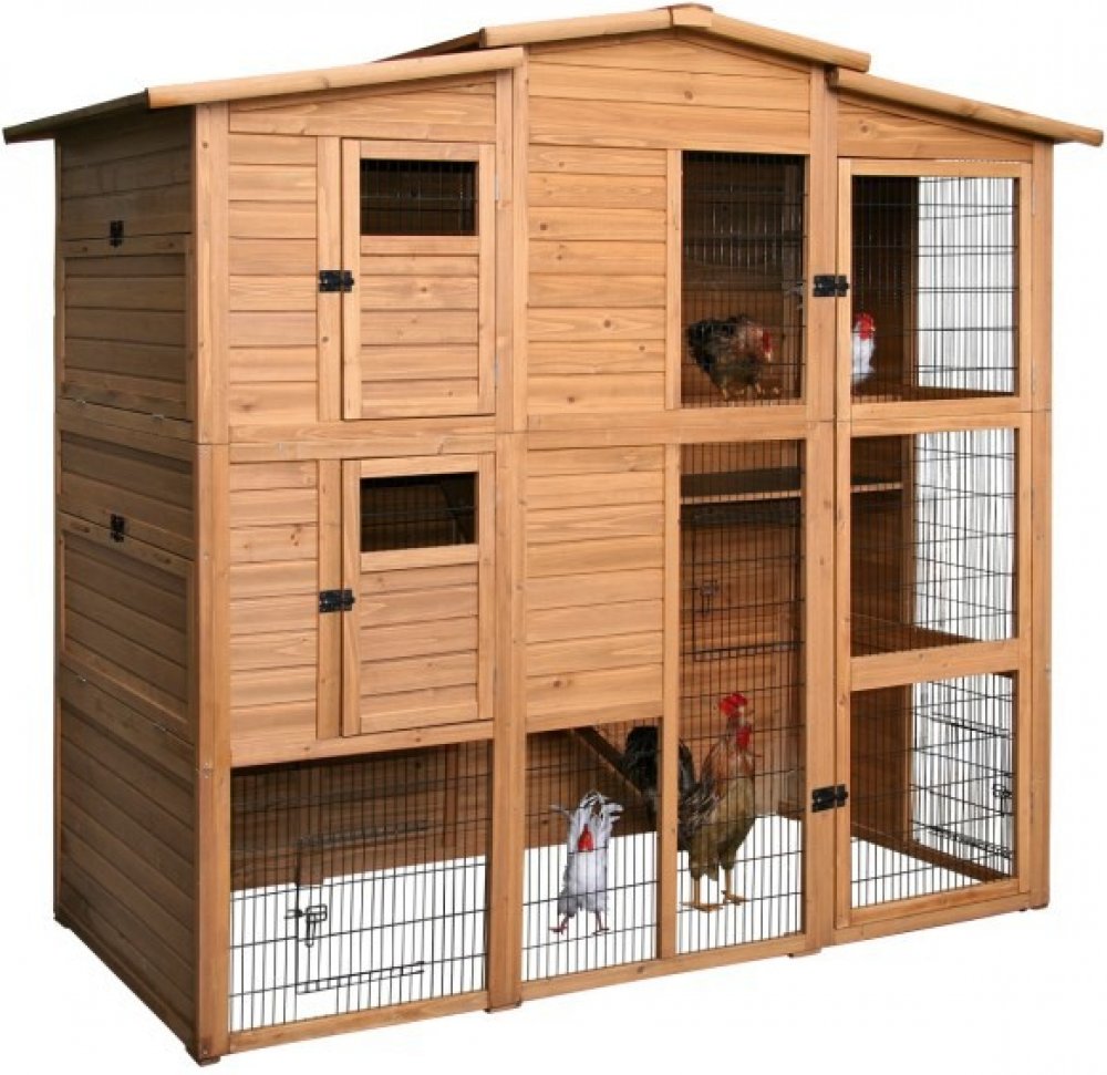 Vybavení kurníku: • 2 podlaží propojená schůdky • 3 snášková hnízda v každém patře s přístupem zvenku • 2 dřevěná bidélka pro noční odpočinek • 6 samostatně otevíratelných a uzamykatelných dvířek • 2 posuvná dvířka vedoucí do výběhu • Odolné mřížky proti predátorům • Plastem kryté nožky pro delší životnost • Bitumenová střecha odolná vůči všem povětrnostním vlivům