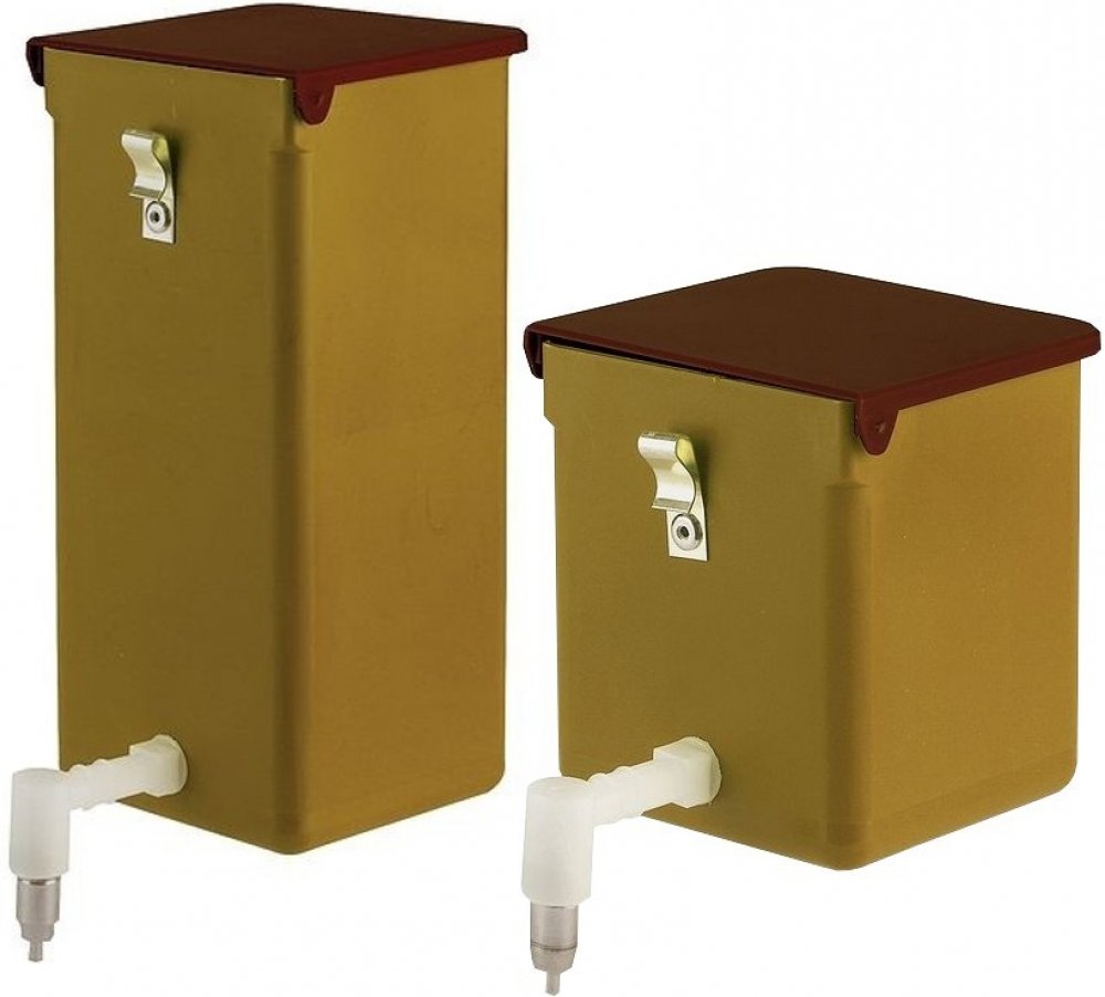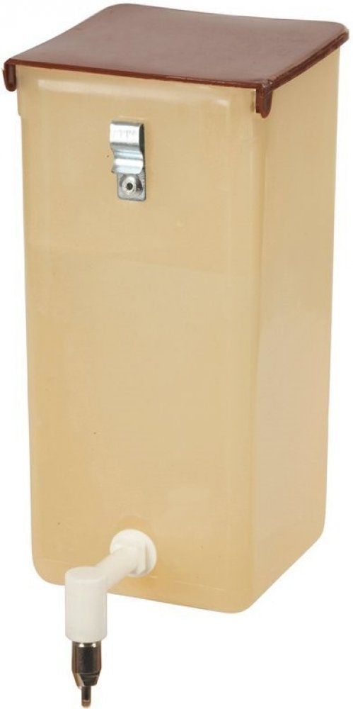 Praktická plastová napáječka pro králíky a jiné hlodavce. Pohodlná montáž na pletivo králíkárny . vyrobeno z plastu výklopné víčko jednoduché doplňování - není třeba napáječku sundavat průhledný zásobník pro snadnou kontrolu hladiny jednoduchá montáž zavěšením objem: 500 a 1000 ml možnost dokoupení náhradního ventilu a plastového kolínka výška: 500 ml - cca 9,5 cm 1000 ml - cca 18 cm šířka: cca 8...