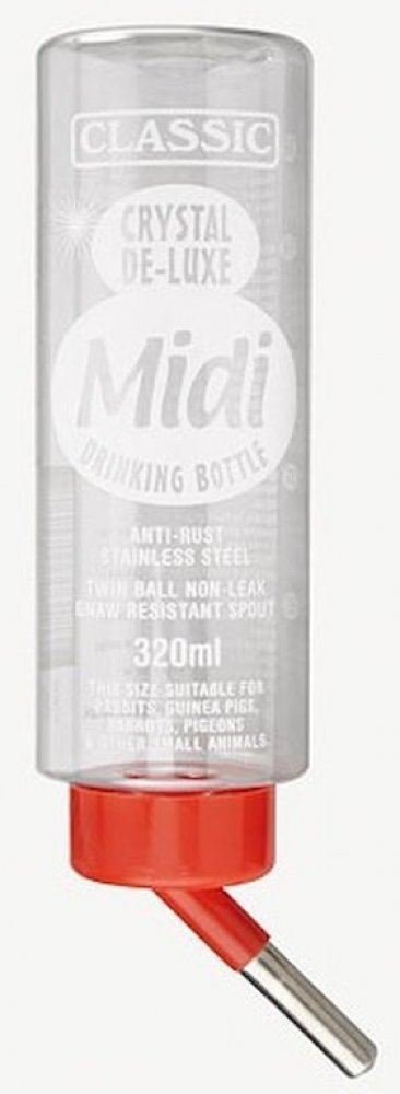 Napáječka pro králíky De Luxe. Napájecí láhev vhodná pro králíky, morčata a jiné hlodavce Průchodka se dvěma pojistnými kuličkami zabraňuje vytékání Drátek umožňující uchycení na všechny druhy klecí Varianty o objemu: 150 ml 320 ml 600 ml 1100 ml