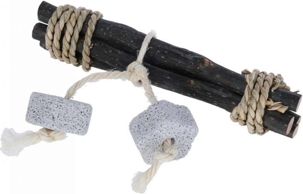 Tato hračka pro králíky a hlodavce spojuje přírodní větvičky, sisal a lávový kámen do zábavné a zdraví prospěšné formy hry.