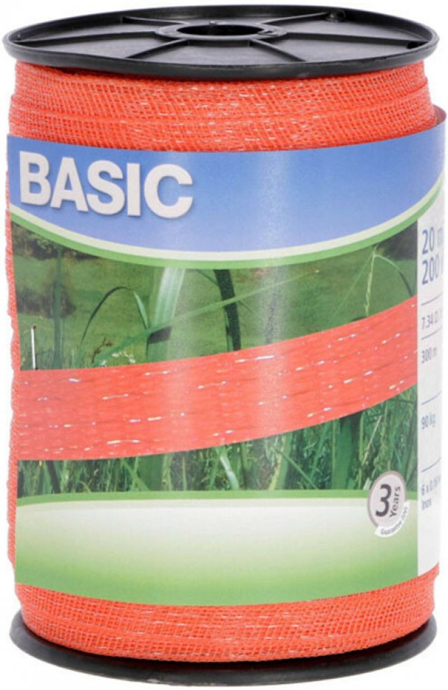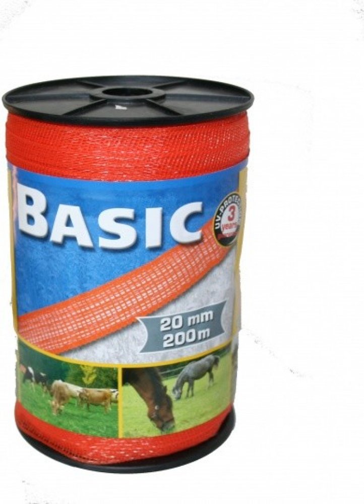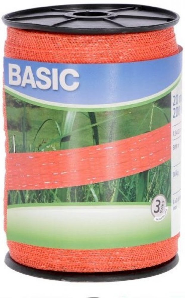 Páska BASIC pro el. ohradník, 20 mm x 200 m, 6x 0,16 mm, oranžová. Vodivá páska pro elektrický ohradník vhodná zejména pro ohrazení koní. Páska je díky své výrazné barvě velmi dobře viditelná.