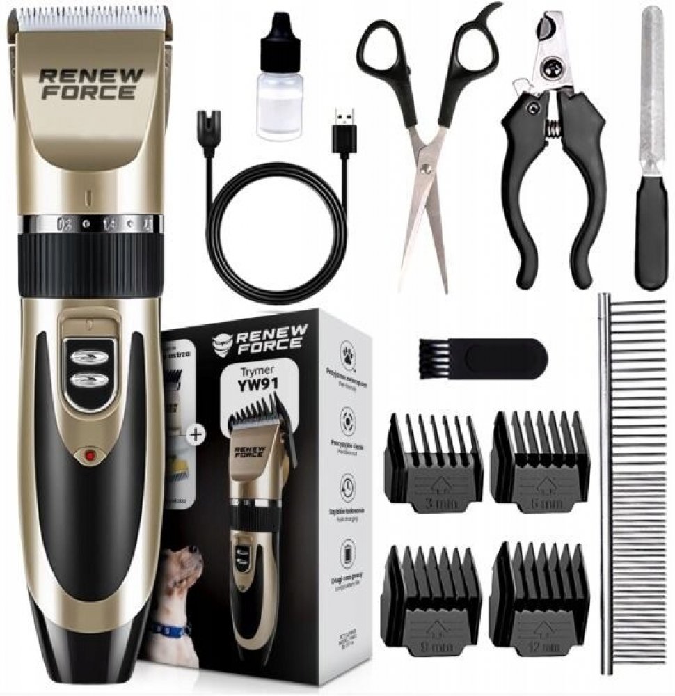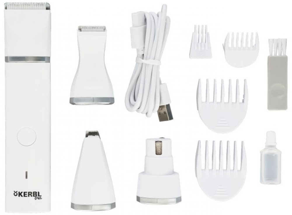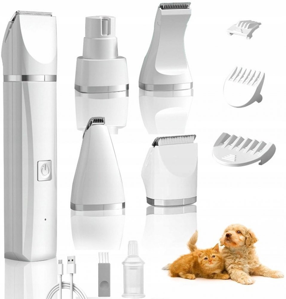 Stříhací strojek 4v1 pro psy a kočky s nástavci pro stříhání, holení a broušení drápků. Sada obsahuje stříhací hlavice pro stříhání větších ploch, holení menších, i detailní odholování a brusku na drápky. Strojek na stříhání psů 4v1 je ideální i pro těžko přístupná a citlivá místa jako jsou tlapky, obličej nebo uši. Hlavice jsou keramické a mají vynikající stříhací vlastnosti. Brusný kotouček je z oceli s diamantovým povrchem a má bezpečnostní kryt. Tento strojek na psy má výkonnou baterii a snadno dobíjí pomocí přiloženého USB kabelu. Při používání je velmi tichý a má nízké vibrace, aby zvířata zbytečně nestresoval.