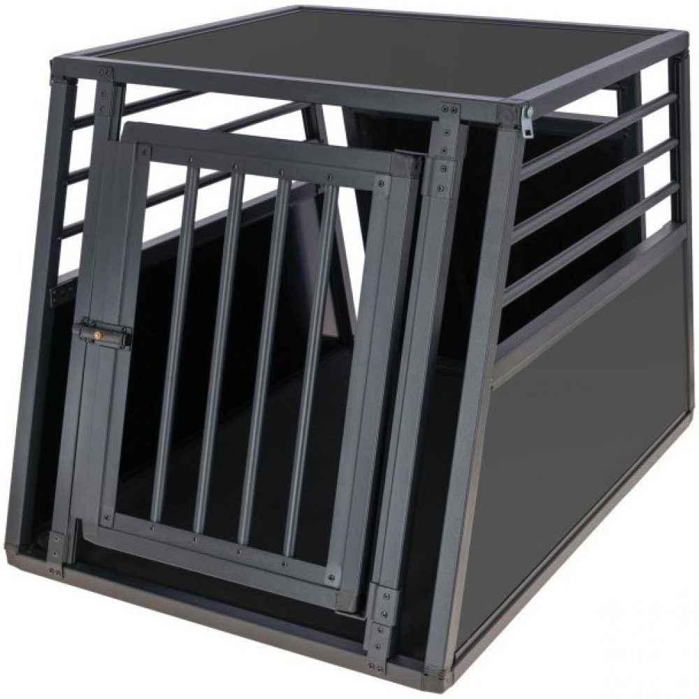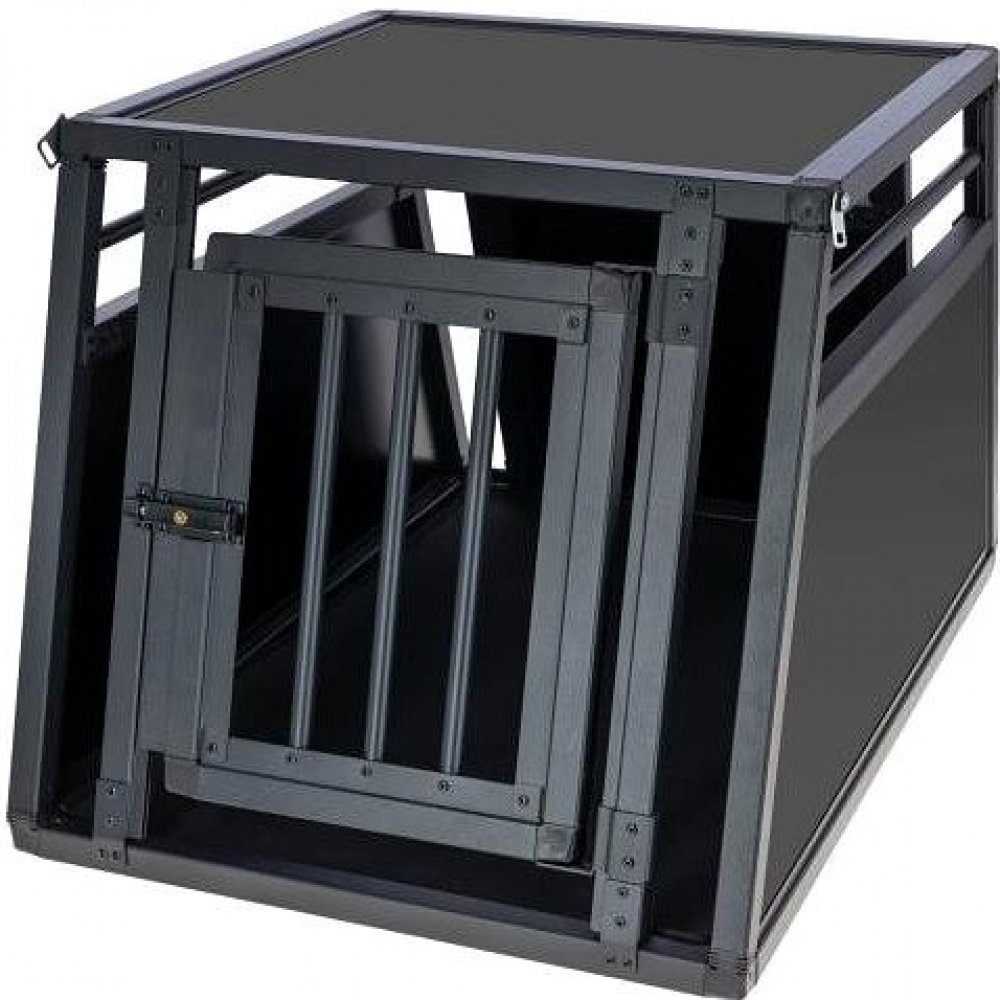 Pokud hledáte vhodný přepravní box pro svého psa do kufru auta, tak Vám nabízíme tento pevný a bezpečný hliníkový transportní box do auta. Přepravní klec je vyrobena z kvalitního hliníkového materiálu, lze jíjednoduše složit. Přepravní klec má prakticky zkosenou přední i zadní část, aby lépe zapadla do kufru auta. Spodek klecetvoří vyjímatelný tepelný protiskluzový koberec, který usnadní čištění.