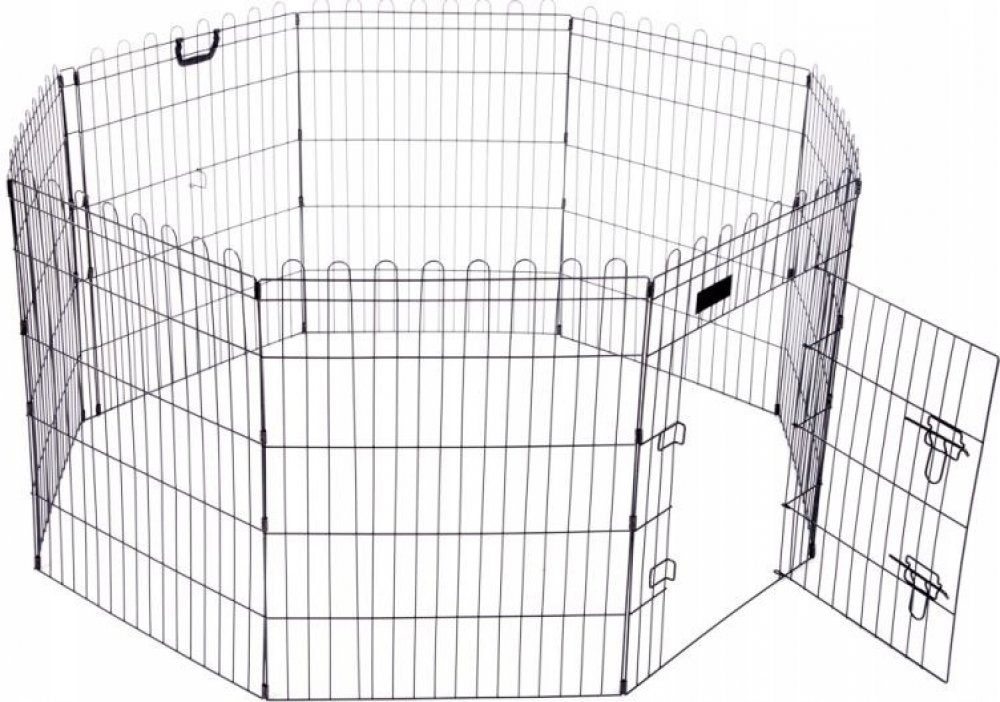 Tento osmistěnný pevný klecový výběh s dvířky je ideálním řešením pro odchov štěňat, chov drůbeže nebo hlodavců. Výběh je navržen tak, aby poskytoval maximální bezpečí a pohodlí pro vaše zvířata. Je vyroben z odolného lakovaného kovu, který je odolný proti poškrábání, což zajišťuje dlouhou životnost a snadnou údržbu.