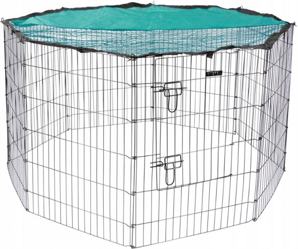 Výběh se velmi snadno montuje a díky své modularitě jej můžete rozšířit o další stěny podle vašich potřeb. Pro ještě větší komfort je možné dokoupit nylonovou podlážku a ochrannou síťku. Dvířka jsou umístěna ve výšce 25 cm od země, což umožňuje snadný přístup, aniž by se zvířata mohla dostat ven.