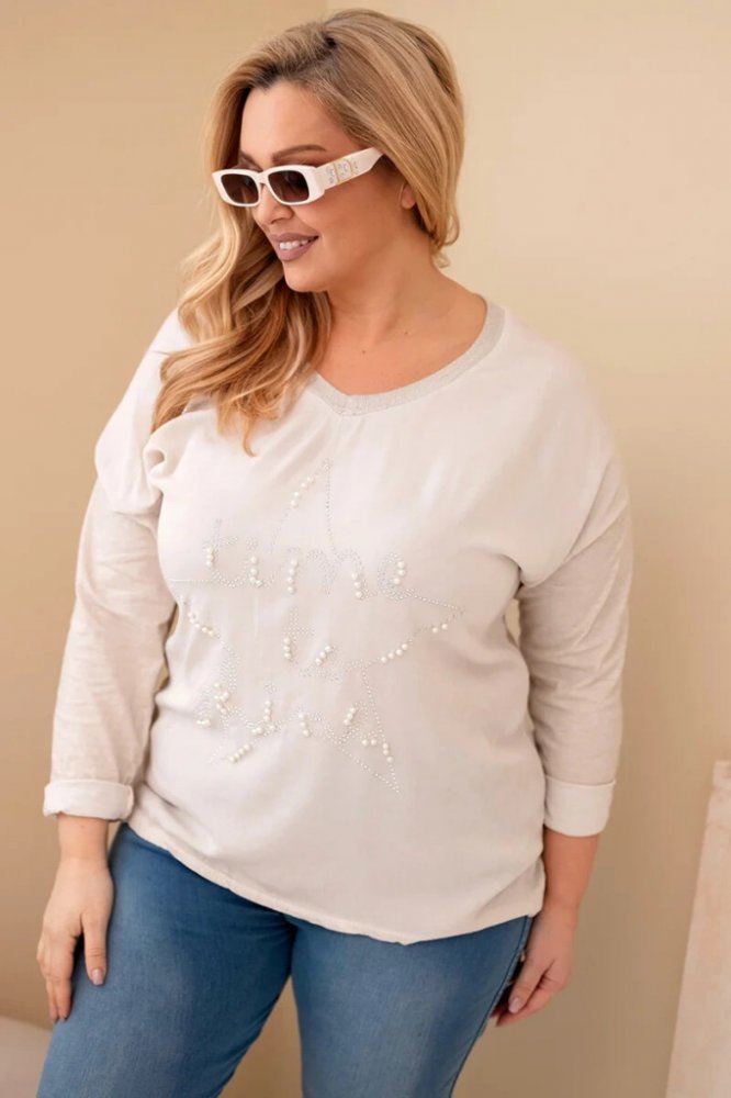 Kesi dámská blůza s potiskem a perličkami Béžová