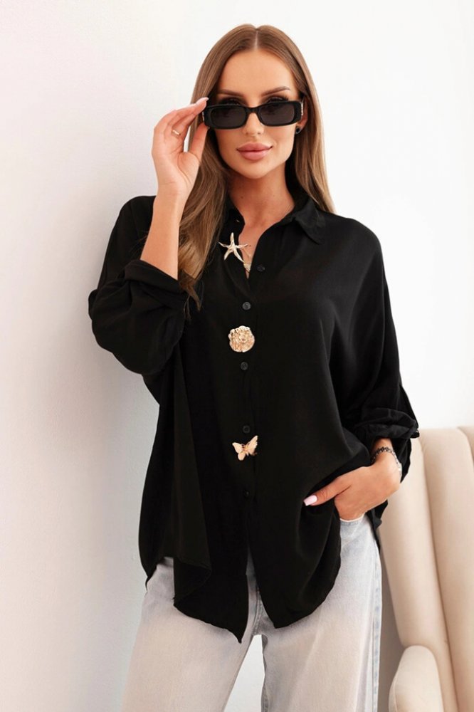Kesi dámská košile ART61953 s viskózou a ozdobnými knoflíky černá
