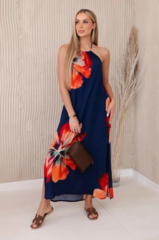 Viskózové šaty se zavazováním kolem krku s květinovým motivem jsou okouzlující a ženskou volbou pro letní dny.