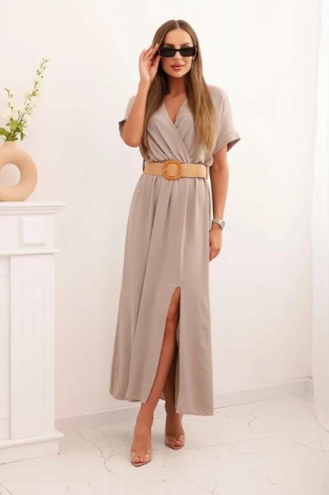 95% polyester 5% elastan Kesi letní dlouhé krátký rukáv pouzdrové rovné béžová jednobarevné hluboký výstřih