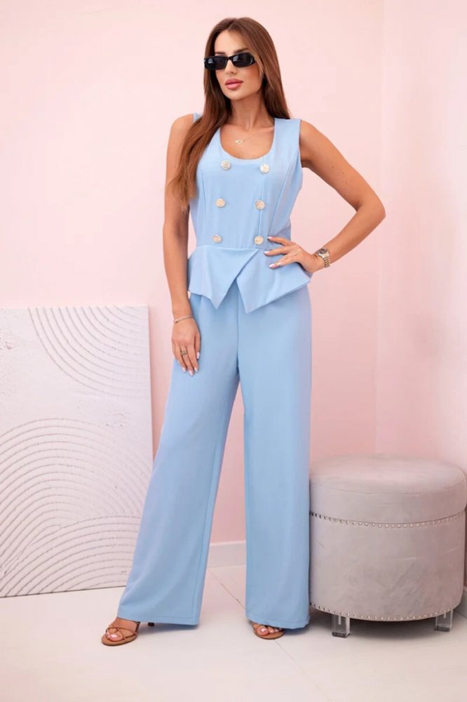 Kesi dámský komplet bez rukávů s širokými nohavicemi a ozdobnými knoflíky modrý