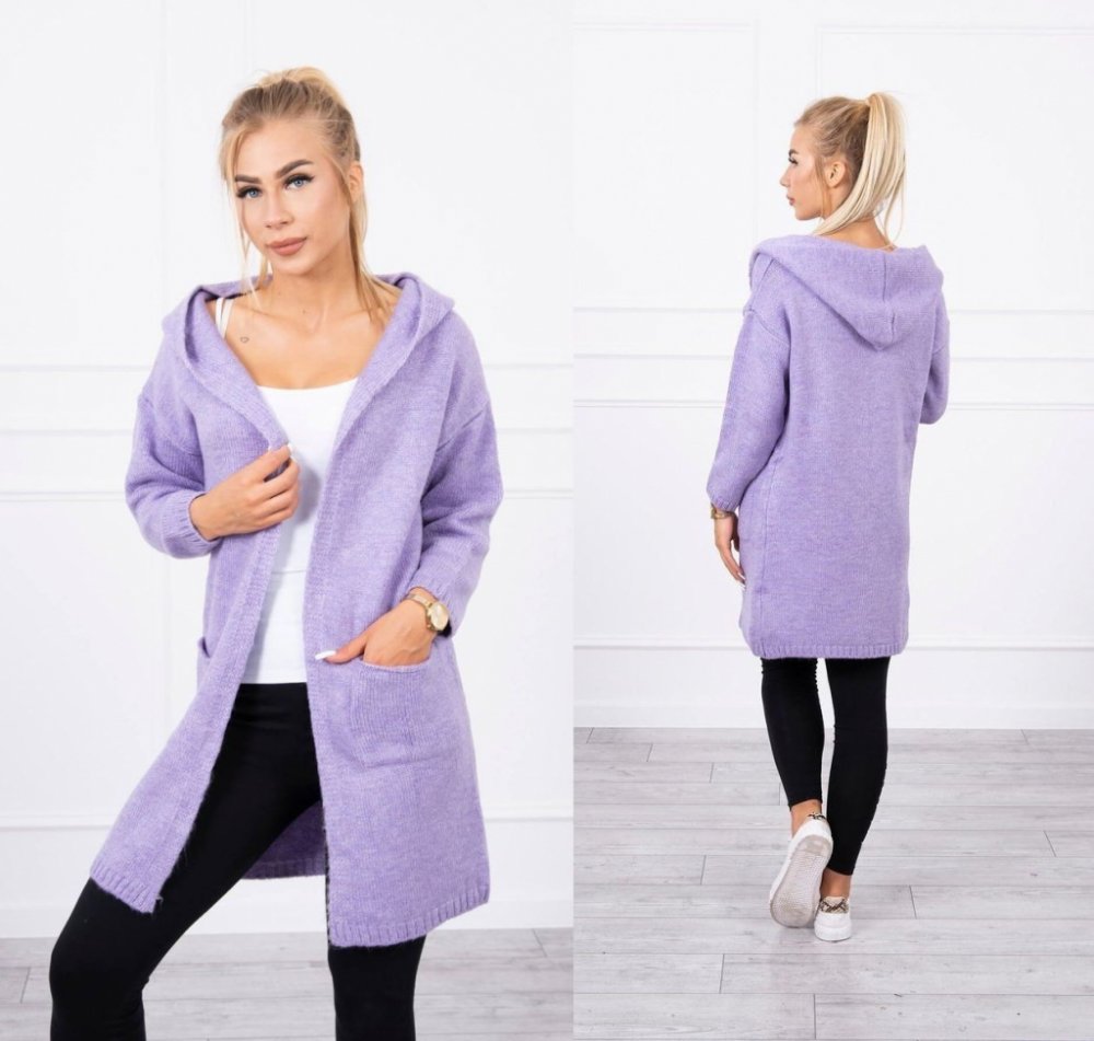 Velmi příjemný dámský pletený kardigan s délkou cca ke kolenům. Stylová kapuce a praktické kapsy se postarají o velmi trendy vzhled.