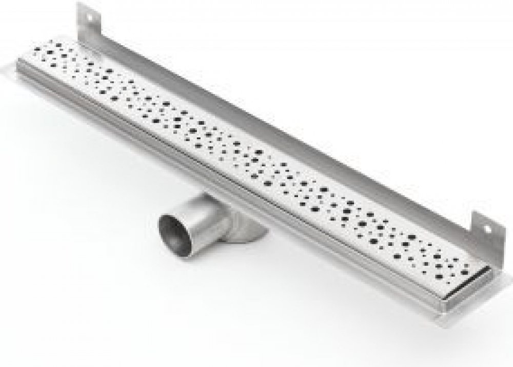 Odtokový sprchový nástěnný žlab KESMET KWF se skládá z: žlabu (nerez) + mřížky CHAOS (nerez) + PVC sifonu + příruby Výška žlabu včetně sifonu: 8,65 cm Šířka žlabu: 7,5 cm Montážní instrukce Katalog