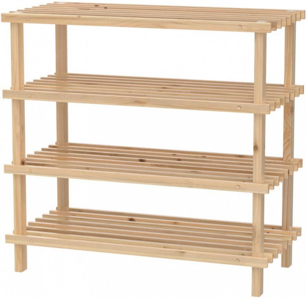 Jednoduchý, ale praktický botník se 4 policemi je vyroben z FSC certifikovaných jedlových latěk. Nabízí místo pro cca 8 párů bot. Každou polici lze zatížit maximálně 10 kg. Snadné sestavení - funguje zástrčkovým způsobem uchycení nohou bez šroubů. Jedná se o přírodní dřevo, suky a nedokonalosti nejsou vadou výrobku.