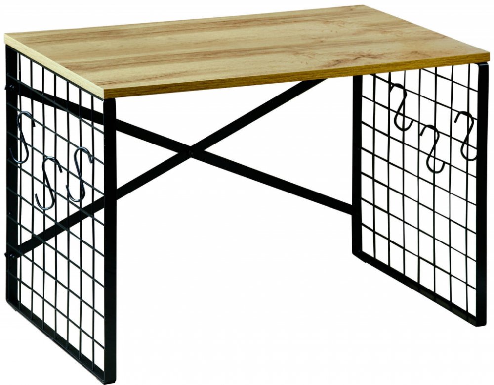 Kesper Kovová kuchyňská police s háčky a dubovým dekorem, 52 x 32,5 cm hnědý