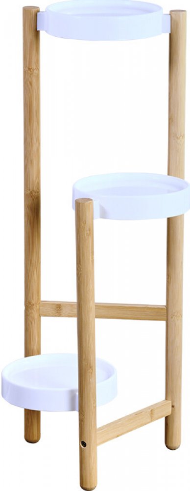 Bambusový stojan na květináče s bílými podložkami