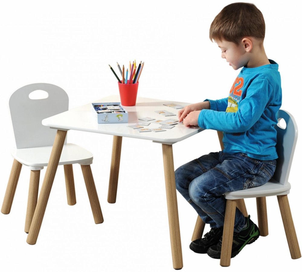 Elegantní dětský stůl s židlemi v provedení bílé a přírodní barvě od německého výrobce. Stoleček je ideálním místem pro hraní, malování, občerstvení nebo pro posezení s kamarády. Originální doplněk do dětského pokoje v jednoduchém čistém designu. Nábytek je robustní a stabilní, snadno se čistí.