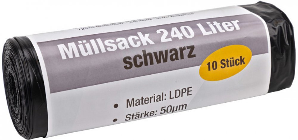 Pytle do odpadkového koše jsou vyrobeny z vysoce kvalitního polyethylenu (LDPE), mají objem 240 litrů. Materiál je velmi pevný, odolný proti roztržení, díky čemuž jsou pytle ideální pro likvidaci domovního odpadu, zahradního odpadu, komerčního odpadu a kuchyňského odpadu.