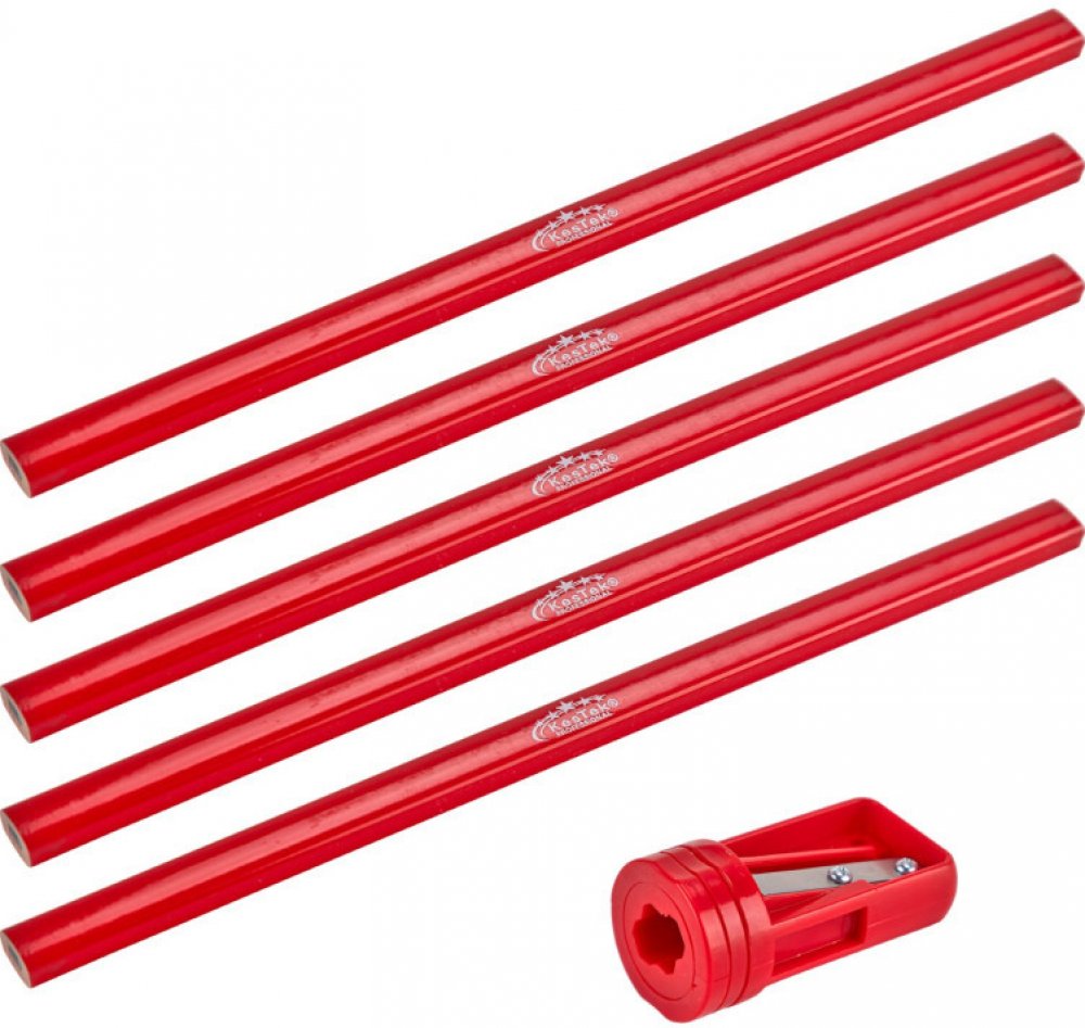 Tesařské tužky pro každého řemeslníka, stavebního dělníka a kutila, s tuhou z grafitu. Tato sada obsahuje pět vysoce kvalitních tesařských tužek ve výrazné červené barvě, ideální pro použití na stavbě. Každá tesařská tužka je dlouhá 24 cm a má hranatý tvar, který zajišťuje pevný úchop. Tužky jsou všestranné a ideální pro značení dřeva, betonu, cihel a jiných materiálů. Součástí balení je struhadlo, které zajišťuje, že vaše tesařské tužky budou vždy připraveny k použití.