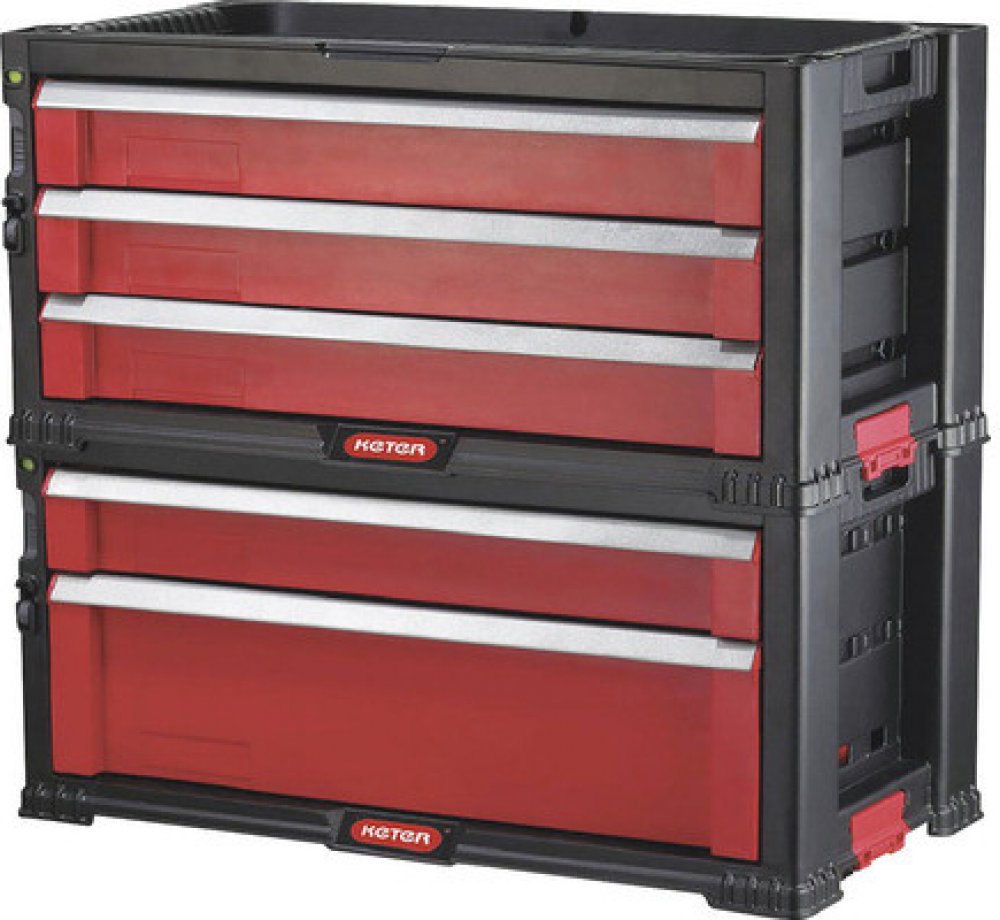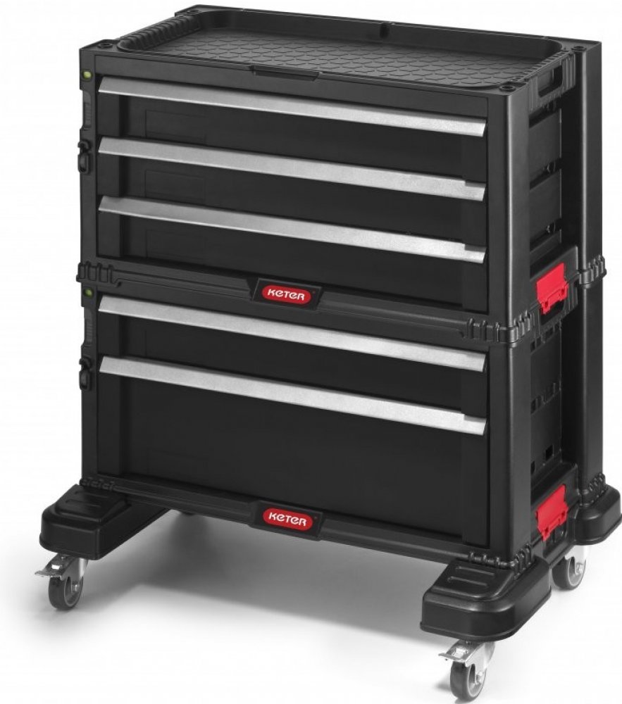 Regál s 5 zásuvkami,Obsahuje hlubokou zásuvku s odnímatelnými přihrádkami na větší a těžší nástroje.