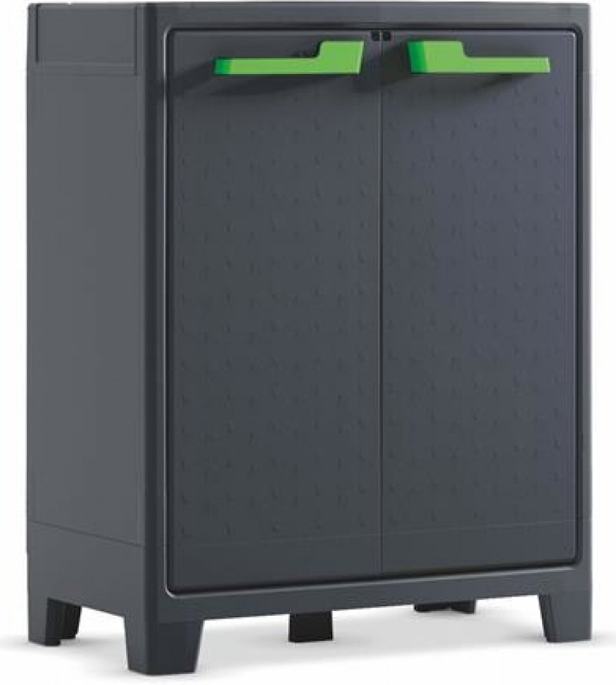 Bezúdržbovou úložnou skříň Keter Moby Low s vysokou odolností vůči atmosférickým vlivům a mechanickému opotřebení a s možností uzamčení využijete v domácnosti, v garáži, v kůlně, ve sklepních prostorách, na zahradě, na terase, v pergole či kdekoliv jinde. Skříň je vybavená zvýšenými nožičkami pro snadné a praktické čištění podlah v interiéru, což oceníte i při úklidu.