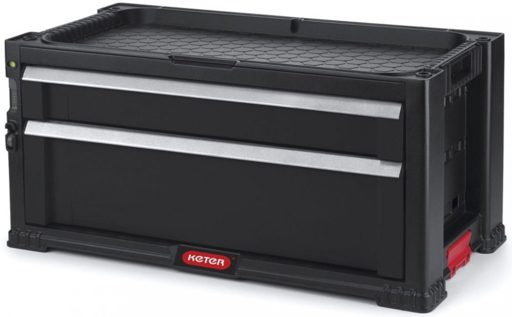 Dělící příčky lze snadnou vyjmout a prostor uspořádat dle svých potřeb. Stohovatelný design se snadnou montáží a demontáží dalších bloků. Dílenský vozík Keter je vyroben z pevného a odolného plastu. Tento materiál nepodléhá korozí, nepotřebuje dodatečnou úpravu povrchu a bude vám sloužit dlouhou dobu.