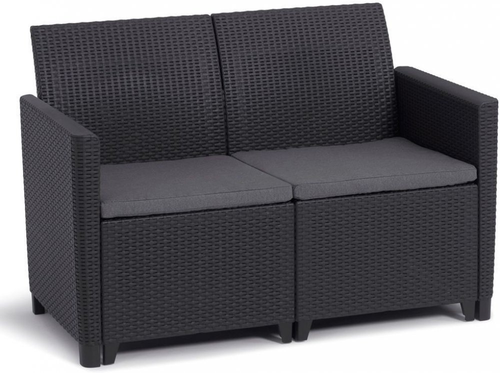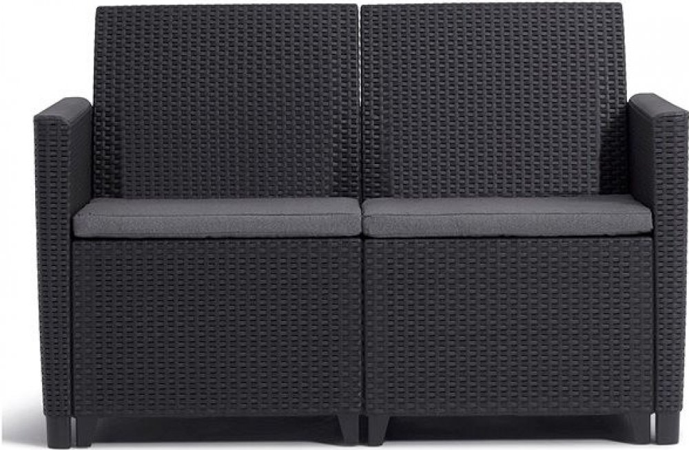 Proměňte svou terasu, balkon nebo dvorek s dvojitým sofa Claire. Sofa je vyrobeno z lisovaného plastu v imitaci přírodního ratanu. Podušky, které jsou součástí sofa, poskytují právě ten extra kousek pohodlí během Vašich odpočinkových chvil. Velmi snadná údržba. Výrobek je vysoce odolný proti UV paprskům a povětrnostním vlivům. Proměňte svou terasu, balkon nebo dvorek s Claire. Polštáře, které jsou součástí balení, vám poskytnou ještě větší pohodlí při chvílích odpočinku. Sada se velmi snadno udržuje. Výrobek je vysoce odolný vůči UV záření a povětrnostním vlivům.Parametry:obsah soupravy: 1x pohovka pro 2 osobyvýška lavice: 74 cmšířka lavice: 65 cmdélka lavice: 113 cmnosnost lavice: 2x110kgmateriál: lisovaný plastbarva: grafitová + šedý polštářekvelikost balení (počet kartonů): 59x64x60cmcelková hmotnost: 11 kgobalový materiál: karton