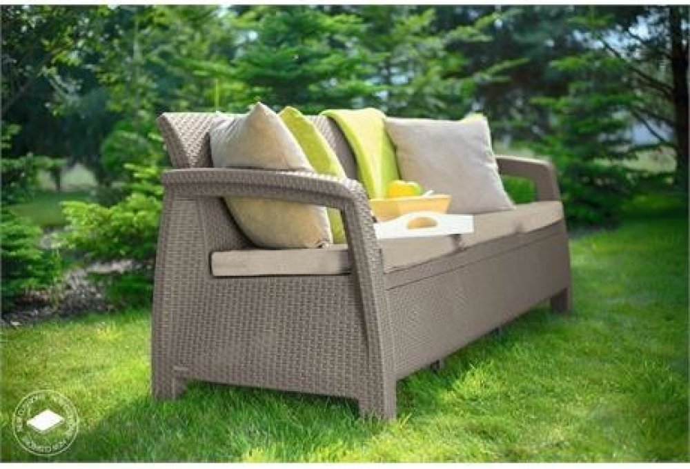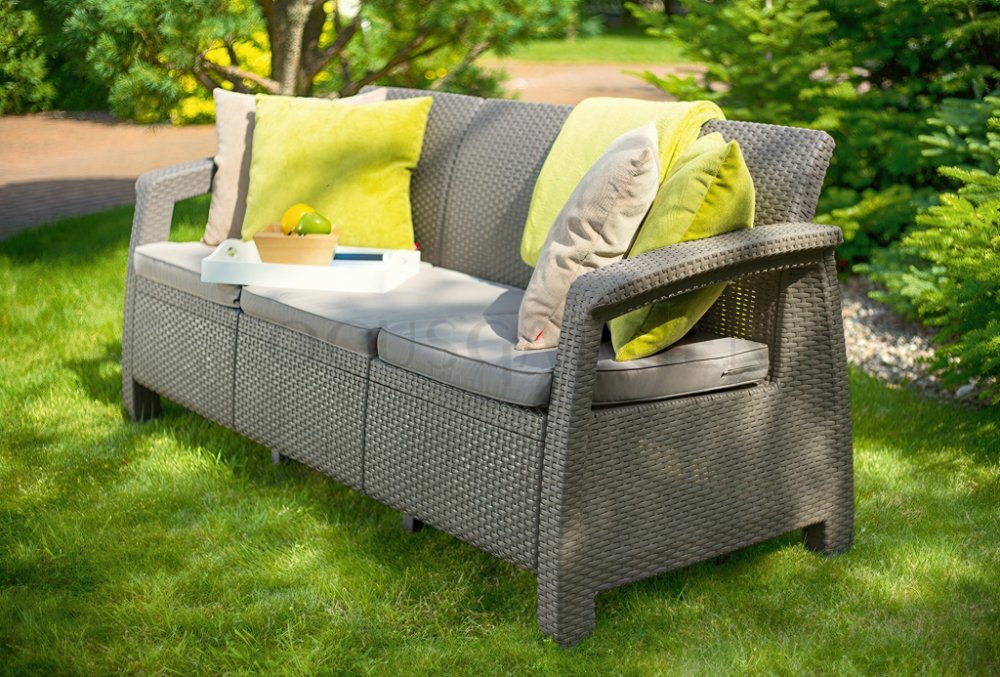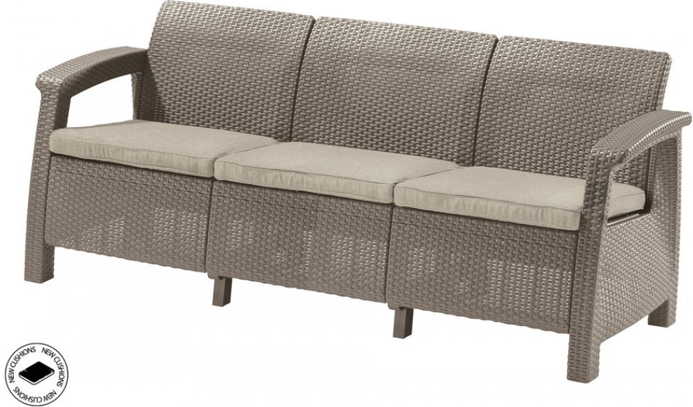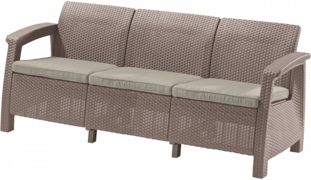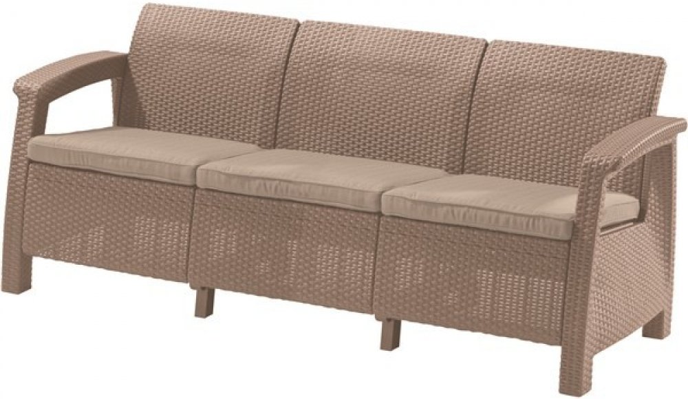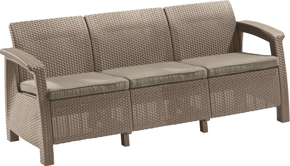 Zahradní třímístná pohovka z řady Corfu je nejoblíbenější z řady nábytku Keter, která vás nadchne svým nevšedním designem v imitaci přírodního ratanu. Konstrukce je přitom pevná a vydrží běžné zatížení venkovního provozu. Pohodlnou sedačku si prostě zamilujete. Objednejte si k ní i křeslo, stolek a dvoumístnou pohovku z řady Keter Corfu a získejte dokonalý zahradní set. Sestavení je velmi snadné, není potřeba žádné speciální nářadí. Vyrobený z recyklovaných materiálů – pevná umělá pryskyřice – které jsou odolné povětrnostním vlivům a UV záření. Můžete jej tak i za špatného počasí nechat venku bez obav o životnost. Tento produkt je z vyroben z recyklovaného plastu. Jeho používáním pomáháte chránit přírodu.Technické údaje:materiál: pevná umělá pryskyřicevýroba: recyklované materiályrám: bez kovových částí – odolný rzimontáž: bez nářadíbarva: cappuccinorozměry: 182 x 79 x 70 cm (š x v x h)hmotnost: 17,5 kgrozměry balení: 120 x 80 x 42 cmhmotnost balení: 23,1 kgObsah balení:1 x pohovka