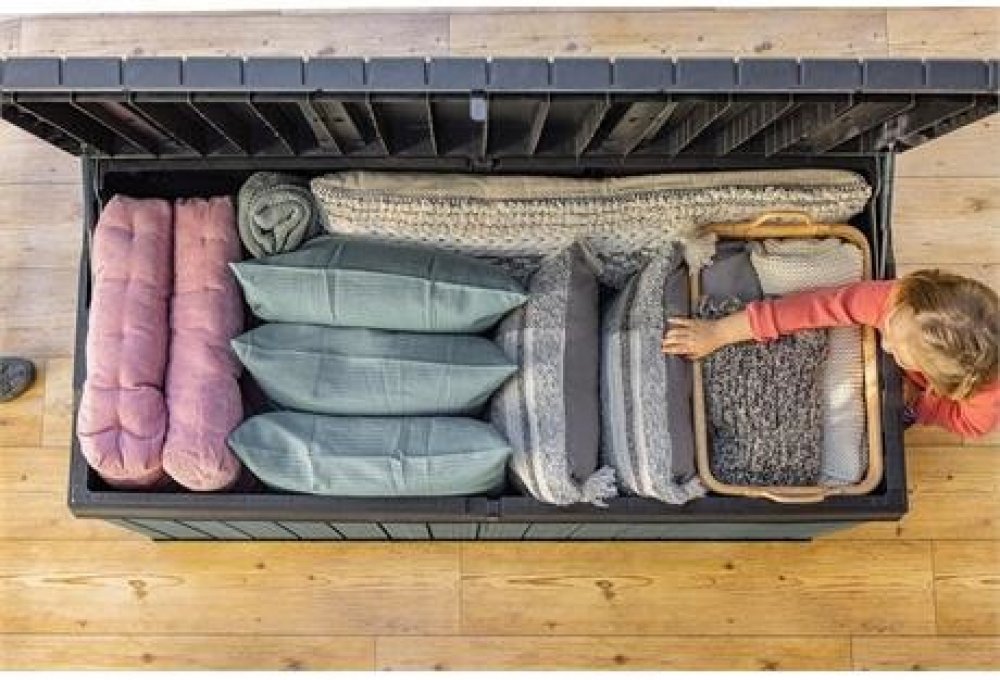 Najděte pro box ideální místo na zahradě. Díky struktuře, která připomíná dřevo, zapadne do každého prostředí. Uložené věci navíc můžete uzamknout uvnitř boxu. Hydraulický pístový systém zajistí plynulé a bezpečné zavírání a otevírání víka. Po zavření se na něj navíc usadí až 2 lidi.