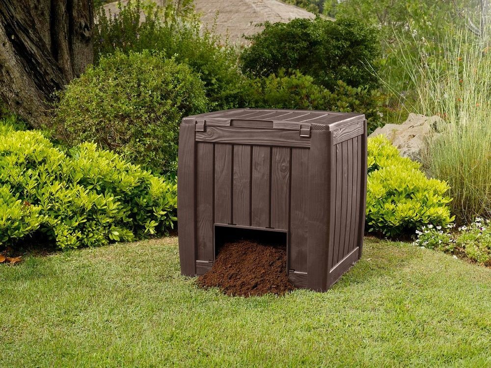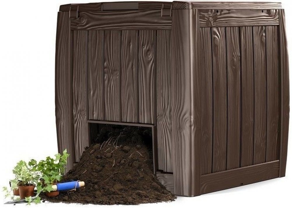 Na tomto kompostéru však oceníte také jeho velice pěkný a vkusný design s imitací dřeva, díky kterému nehrozí, že byste narušili přírodní vzhled vaší zahrady.