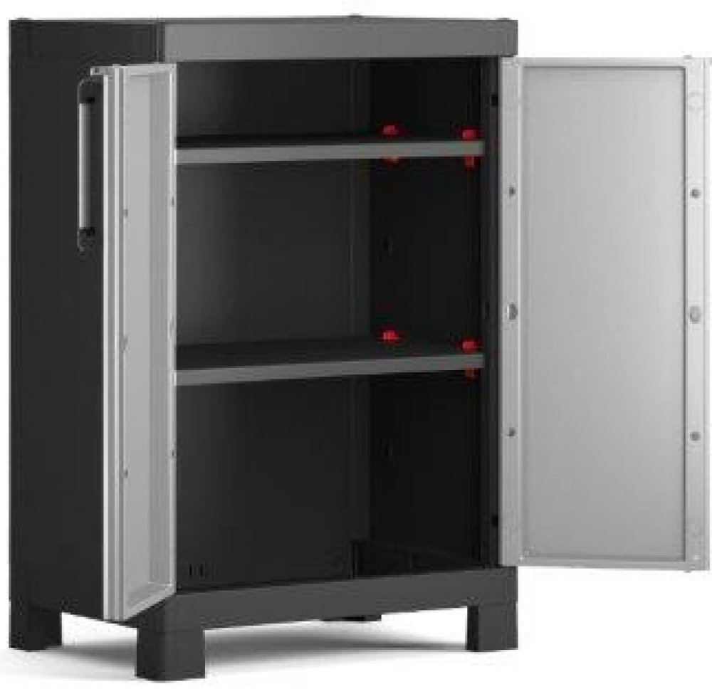 Robustní konstrukce ze syntetické PP pryskyřice poskytuje této skříni zvýšenou odolnost vůči prachu, vlhkosti, vodě, rzi, hnilobě a hrubému zacházení, což zvyšuje její celkovou životnost na absolutní maximum. Zabudovaný podlahový panel zase zajistí tolik potřebnou ochranu před proniknutím deště, sněhu, bahna, prachu a dalších nečistot. Díky možnosti uzamčení ochráníte veškeré uschované cennosti před odcizením, tudíž bude vnitřní obsah v naprostém bezpečí za každé situace.