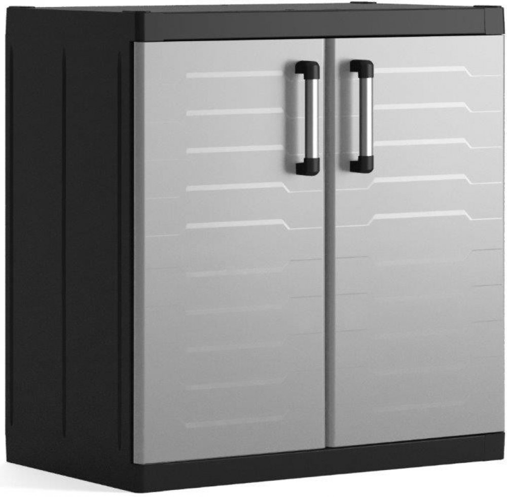 Skříň obsahuje celkem 2 přídavné police - každá s výraznou nosností až 25 kg, které přijdou vhod pro výrazně těžší předměty všeho druhu. Lze ji tedy využít pro skladování dílenského nářadí či zahradnických potřeb, například pro uložení náčiní, které by se jinam nevešlo. Díky svému provedení v neutrální šedé barvě zapadne do každého prostoru bez ohledu na jeho konceptuální styl.