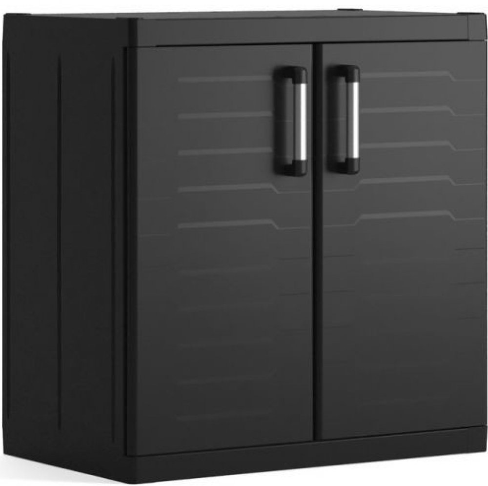 1x skříň Keter Detroit XL Low s policemi a uzamykatelnými dveřmi