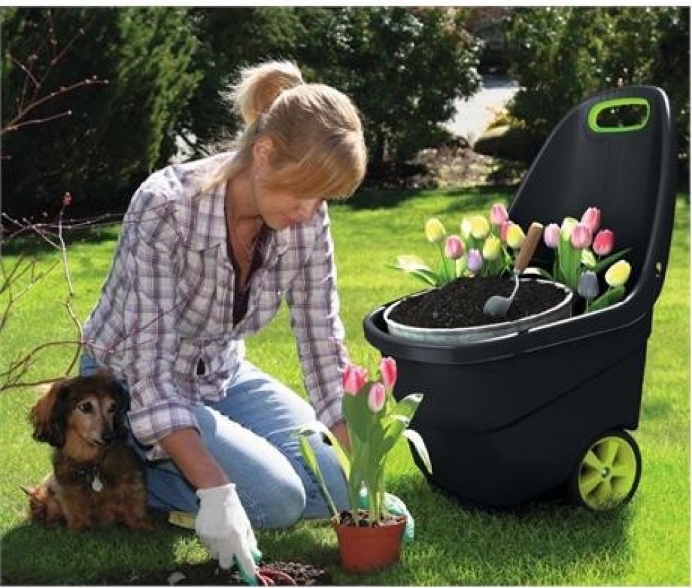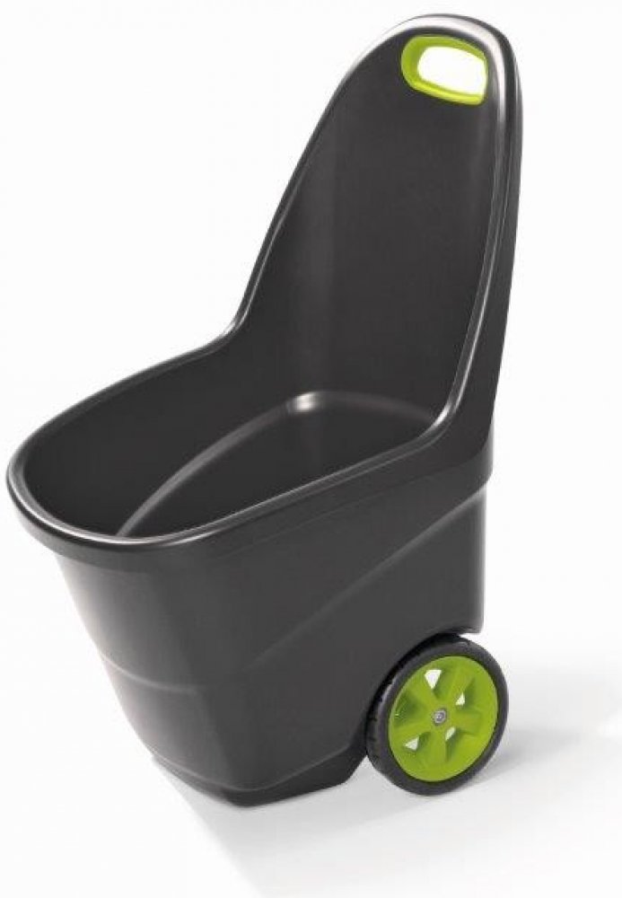 Zahradní vozík Easy Go XL značky Keter má kapacitu 62 litrů. Šedozelený lehký pomocník zvládne stejné činnosti jako zahradní kolečko. Avšak dostane se i do úzké branky a těžko přístupného terénu.