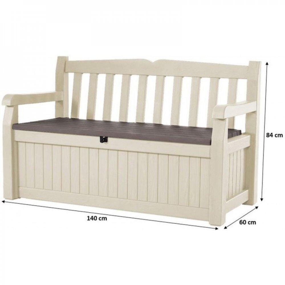 Lavice je vybavená 2 područkami, takže poskytne maximální luxus a komfort při venkovním posezení, při grilování i při další příležitostech. Dá se také využít jako praktický úložný prostor se štědrou kapacitou až 265 l. Ten najde své uplatnění při skladování podsedáků, polštářů, zahradního i dílenského nářadí či dětských hraček. Lavice je vyrobená z kvalitní polypropylenové pryskyřice, která ji propůjčuje vzhled přírodního dřeva i extrémní odolnost vůči povětrnostním vlivům, UV záření i proti mechanickému a jinému opotřebení. Vzhledem k ochraně před UV zářením její barva nevybledne ani na ostrém slunci, takže vám bude sloužit spolehlivě a po dlouhou dobu. Na údržbu vám pak postačí vlhký hadřík.Technické údaje:materiál: polypropylenová pryskyřicebarva: béžováhmotnost: 14,75 kgobjem: 265 lnosnost: 350 kgúložný prostor: 127 x 48,26 x 38,1 cm (Š x V x H)rozměry produktu: 138,68 x 96,26 x 59,43 cm (Š x V x H)hmotnost balení: 16,1 grozměry balení: 132,5 x 75 x 18,5 cm (Š x V x H)Obsah balení:1x zahradní lavice