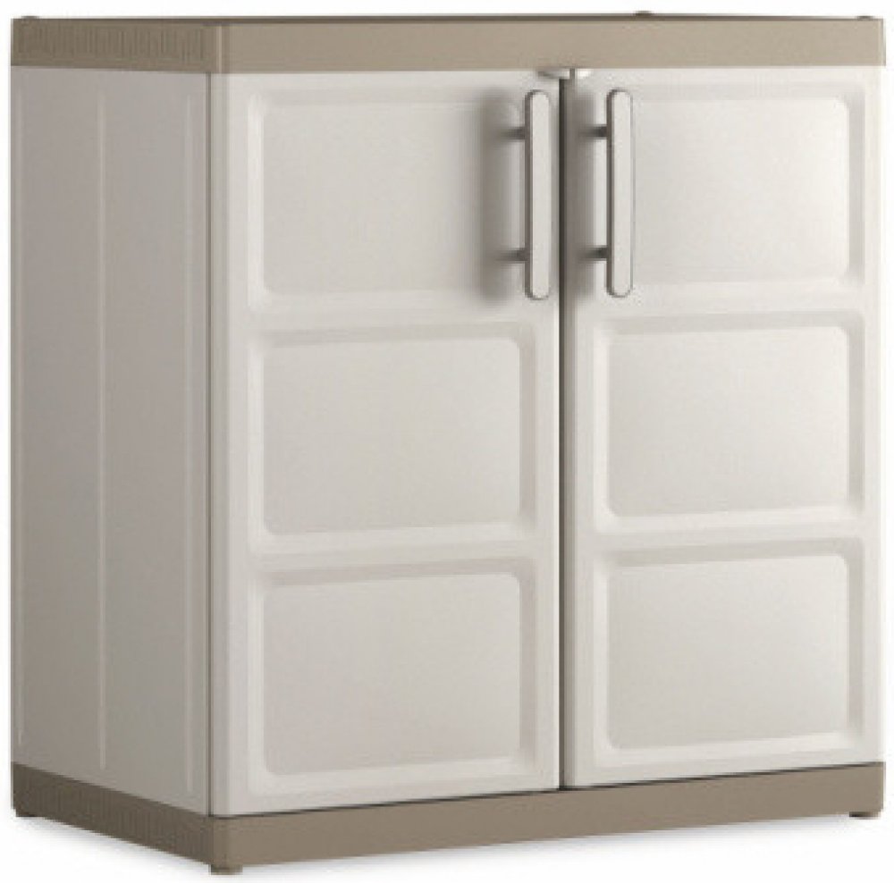 1x skříň Keter Excellence XL Low s policemi a uzamykatelnými dveřmi