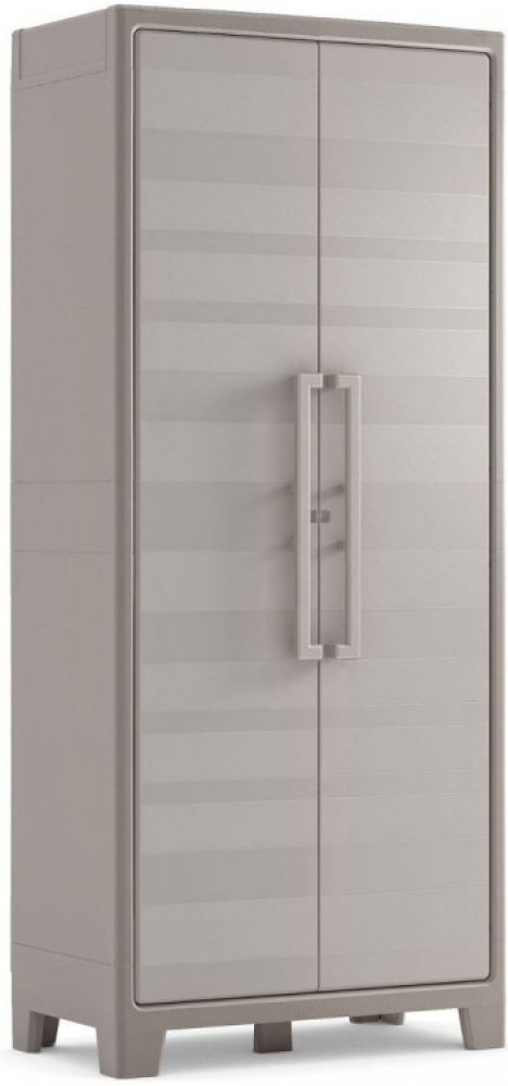 Skříň je vyrobena z odolného plastu, který chrání UV vrstva proti předčasnému stárnutí materiálu. Ochrana IPX3 zajistí bezpečné použití i ve vlhčím prostředí. Dveře jsou vybaveny systémem Assisted Opening System (AOS), který podporuje snadné a pevné zavírání. Stabilitu zajišťuje pátá noha a možnost uzamknutí skříně dodává na bezpečnosti.