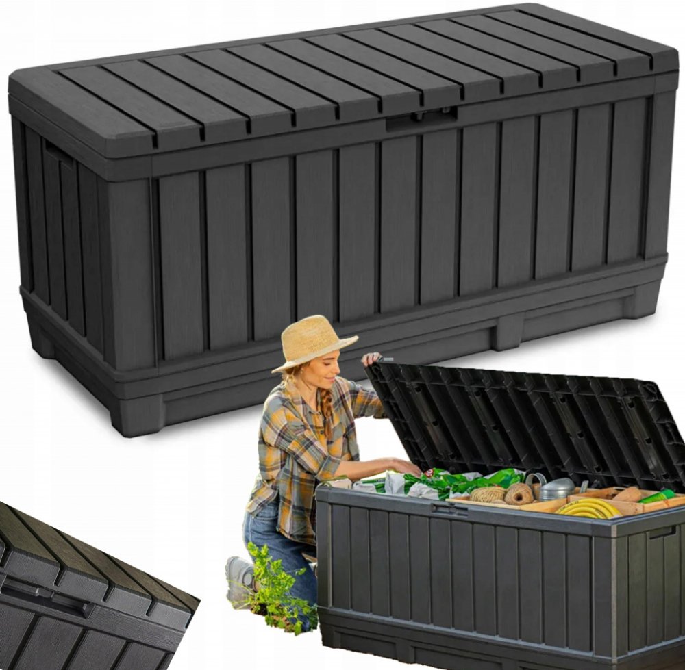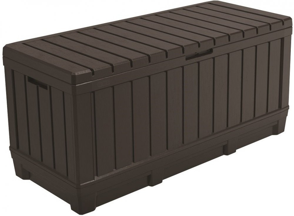 Větší plastový box s úložným prostorem o obsahu 350 l. Kentwood odkládací box umožňuje pohodlně uložit vše, co chcete mít po ruce na Vaší zahradě. Vyznačuje se velkou kapacitou, díky tomu se do něj vejde například - zahradní nářadí, polštáře nebo přikrývky. Jeho montáž je velmi jednoduchá a nevyžaduje žádné specializované nástroje.