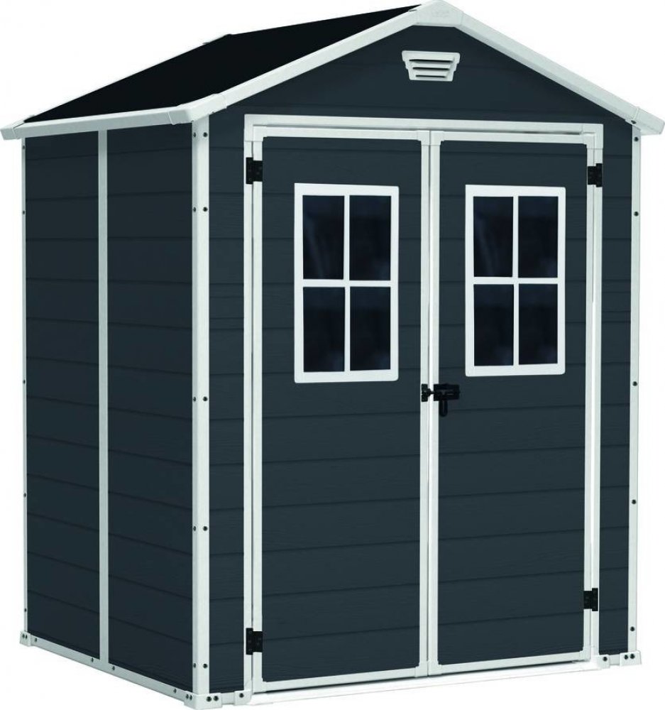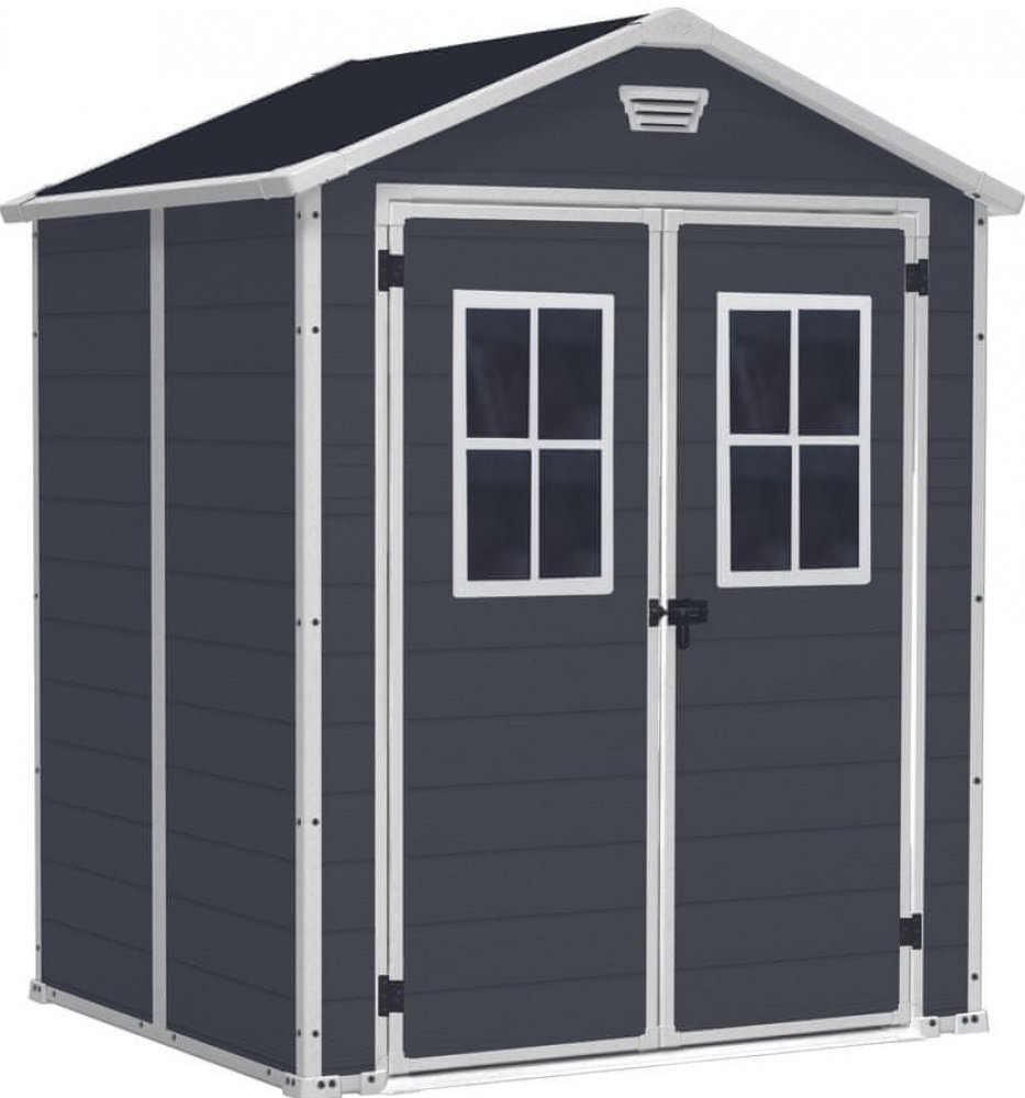 Zahradní domek Manor 6 x 5 má optimální velikost a je snadné jej sestavit. Domek je vhodný pro skladování zahradního nářadí, ale také pro uchování sportovního náčiní, dílenského nářadí i vybavení pro grilování, včetně rozměrnějších plynových grilů. Je vybavený silnou sedlovou střechou, která vydrží zatížení až do 75 kg/m², takže hravě odolá i haldě sněhu. Má dvojité dveře s dvěma okny a ventilační systém s regulovanou cirkulací vzduchu. Podlahový panel pak vydrží zatížení až 150 kg/m² a spolehlivě tak ochrání obsah před bahnem, deštěm, sněhem i hlodavci a jinými škůdci. Přední dveře jsou opatřeny ocelovou západkou, na kterou lze nasadit visací zámek pro větší bezpečnost. Domek dokonale spojuje estetiku designu pravého dřeva s nejlepšími vlastnostmi plastů, takže je zcela odolný vůči UV záření i extrémním srážkám a povětrnostním vlivům. Navíc je nenáročný na údržbu, nemusí být vůbec impregnován a k čištění vám tak postačí jenom hadřík s horkou vodou.Technické údaje:barva: tmavě šedá a bílábarva střechy: tmavě šedátvar domku: klasickýtvar střechy: Apexdvojitá stěna: Anodvojité dveře: Anopočet oken: 2 ksventilační mřížka: Anomaximální zatížení střechy: 75 kg/m²maximální zatížení podlahy: 150 kg/m²čistá hmotnost: 55,2 kgrozměry: 152 x 226 x 185 cm (Š x V x H)hmotnost balení: 60 kgrozměry balení: 20,5 x 200 x 113 cm (Š x V x H)Obsah balení:1 x zahradní domek Keter Manor 6 x 5 DD1 x montážní sada