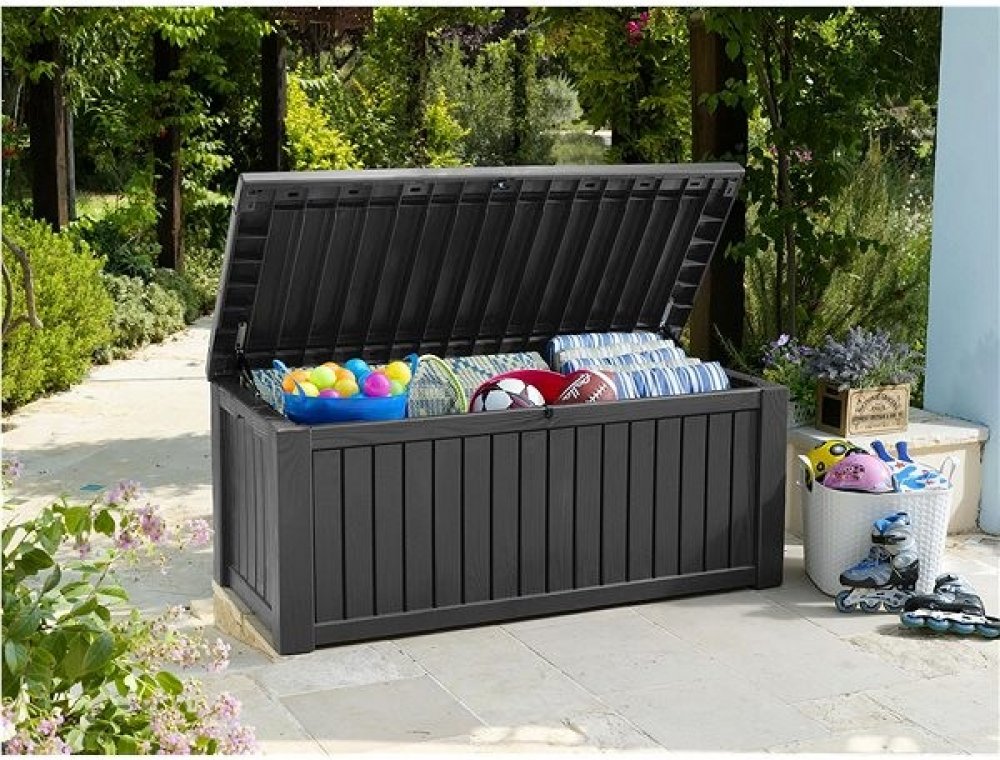Zahradní box Rockwood značky Keter v grafitové barvě má objem 570 litrů. S přehledem tak do něj uložíte potřebné doplňky příjemného posezení, ať už jde o deky, polštáře nebo třeba lampiony. A navíc ho můžete využívat jako lavici na sezení, neboť jeho konstrukce unese 220 kg.