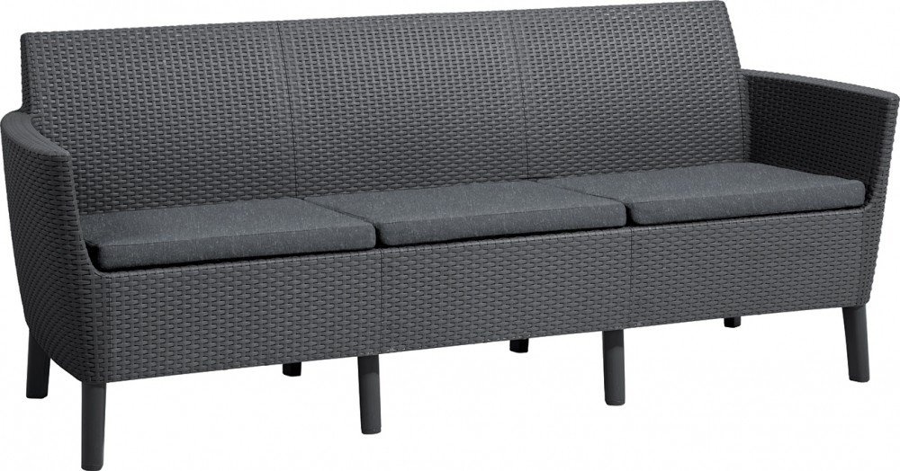 Jedná se o elegantní trojmístné sofa v imitaci ratanu.