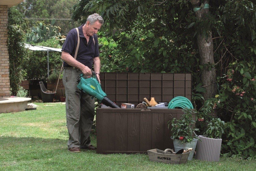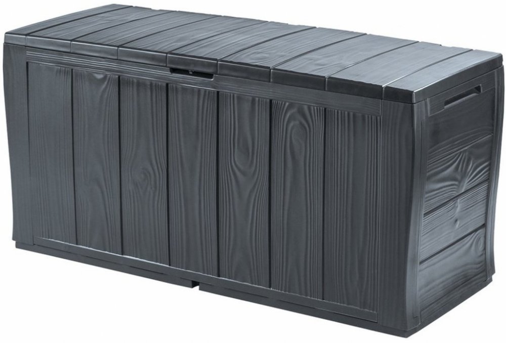 Truhla SHERWOOD je díky své kapacitě 270l skvělým řešením pro uložení polstrů, polštářů, hraček a dalších drobných věcí a doplňků pro Vaši zahradu, terasu nebo pergolu.