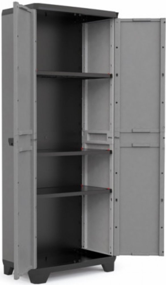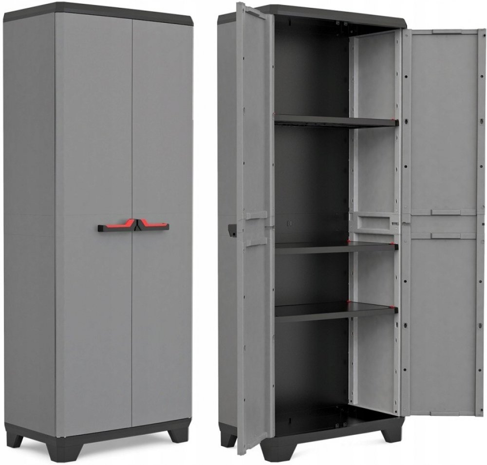 Velká policová skříň s nosností 15 kg na polici se ideálně hodí pro umístění v dílnách, šatnách, verandách nebo v garážích. Je velmi praktickým pomocníkem k organizaci různých věcí. S elegantním designem.
