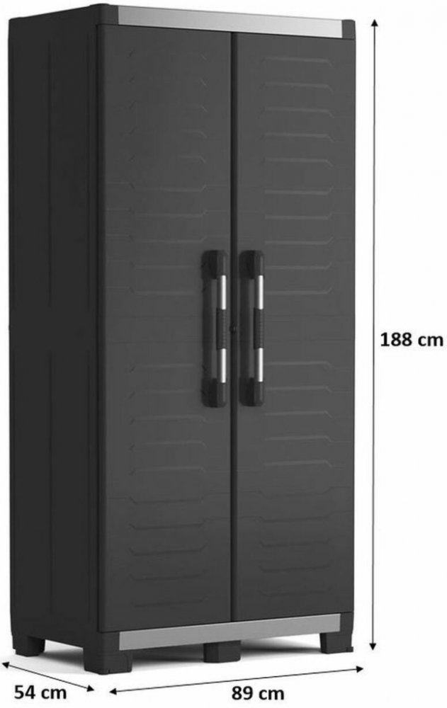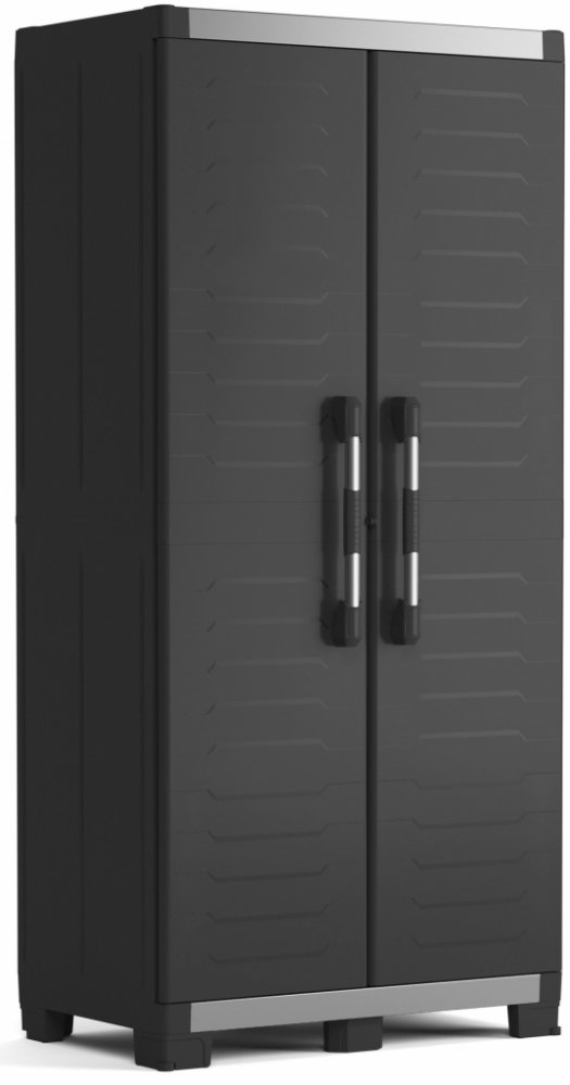 Skříň Keter XL Garage High se díky svému technickému modernímu vzhledu hodí do jakékoliv dílny nebo sklepa