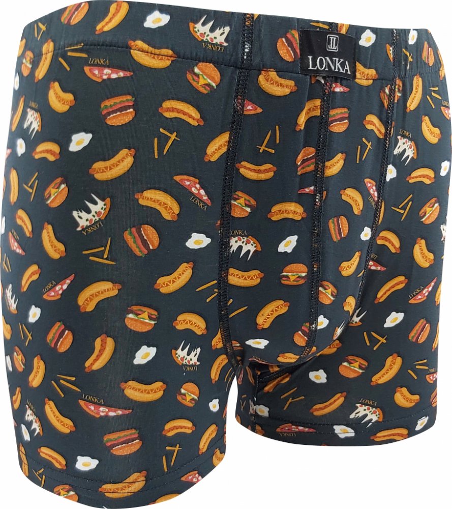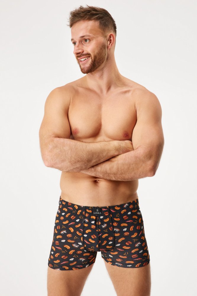 Pánské obrázkové boxerky Lonka® KEVIN IMAGE jsou trendy elastické boxerky přiléhavého střihu pro každého muže. Přírodní bavlněný úplet je doplněný o pružný elastan, takže boxerky perfektně padnou. Zadní díl je vcelku a přední část je dvouvrstvá, díly jsou sešité plochými švy pro maximální pohodlí. Guma se nedotýká pokožky, je skrytá v úpletu. Pánské boxerky mají celoplošný tisk s trendy vtipnými o...