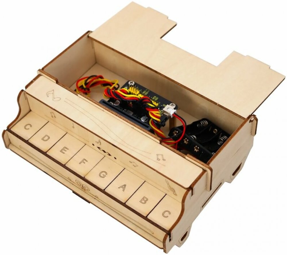 Elektronická sada pro sestavení miniaturního tlačítkového piana a výuku hry na něm, vyžaduje micro:bit desku (součást balení). Sada pro výuku hry na tlačítkové piano od Keyestudio STEM je zábavný a interaktivní způsob, jak se začátečníci mohou naučit základy programování a elektroniky. Tato sada vám umožní vytvořit si vlastní piano pomocí tlačítkových modulů a mikrokontroléru s podrobnými pokyny v manuálu. Ideální pro začínající programátory a elektronické nadšence všech věkových kategorií. Tato unikátní sada pro výuku hry na klavír, vyrobená z lipového dřeva jako konstrukčního materiálu, integruje osm tlačítek a také základní desku micro:bit nebo ESP-32 Easy Coding Board jako hlavní ovládací desku (je součást balení). Vestavěný bzučák desky umožňuje hrát stupnice do, re, mi, fa, so, la, si a Do.Pro psaní kódů s větší kreativitou byla tato sada navržena tak, aby byla kompatibilní s různými programovacími softwary, jako jsou makcode a KidsBlock3.0. S touto sadou si nejen osvojíte základy hry na klavír, ale také si užijete skvělou příležitost naučit se programovat, což do značné míry stimuluje vaši kreativitu a talent. Přejeme vám krásný zážitek s okouzlující hudbou a perfektní kombinací učení a zábavy!Funkce:Šetrné k životnímu prostředí: Tato stavebnice využívá ekologické materiály, které jsou zelené a udržitelné.Snadná montáž: Pro větší pohodlí a efektivitu je proces montáže velmi snadný.Zážitek z hry na klavír: S tímto klavírem si můžete užít zábavu z hudby.Hudba v programování: Integruje hudební výuku s programováním a poskytuje vám zcela nový programátorský zážitek.Více programovacích jazyků: Lze to umožnit pomocí Makecode nebo KidsBlock, které dokonale splňují rozmanité programátorské potřeby a rozšiřují možnosti učení.