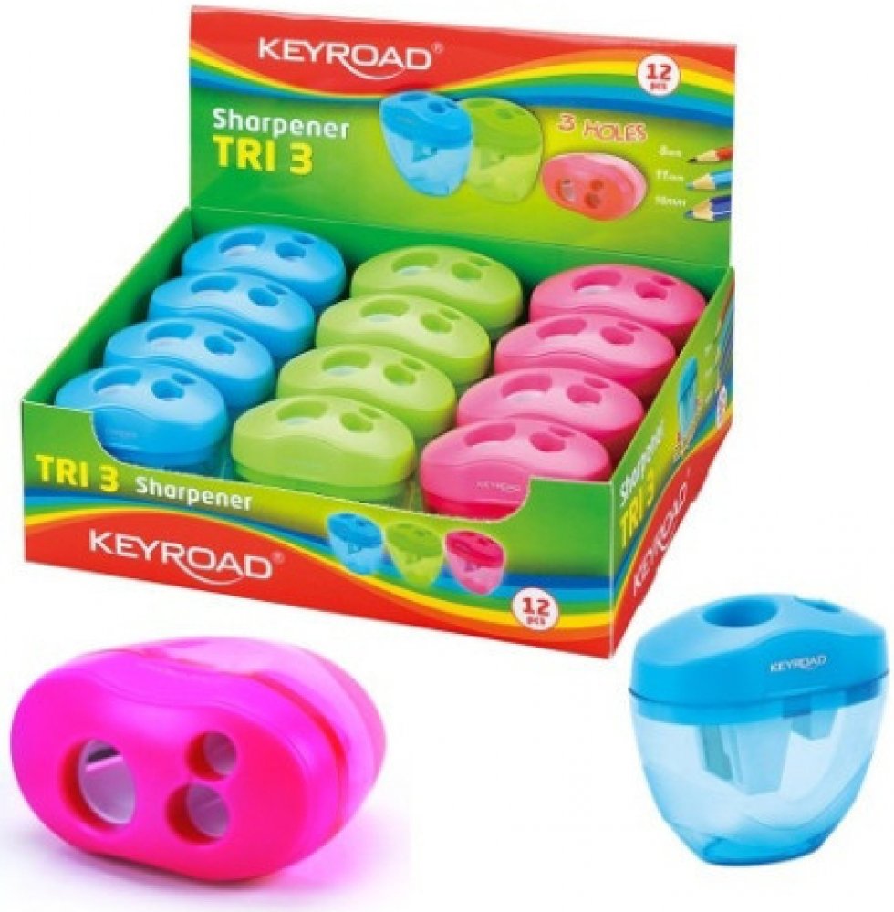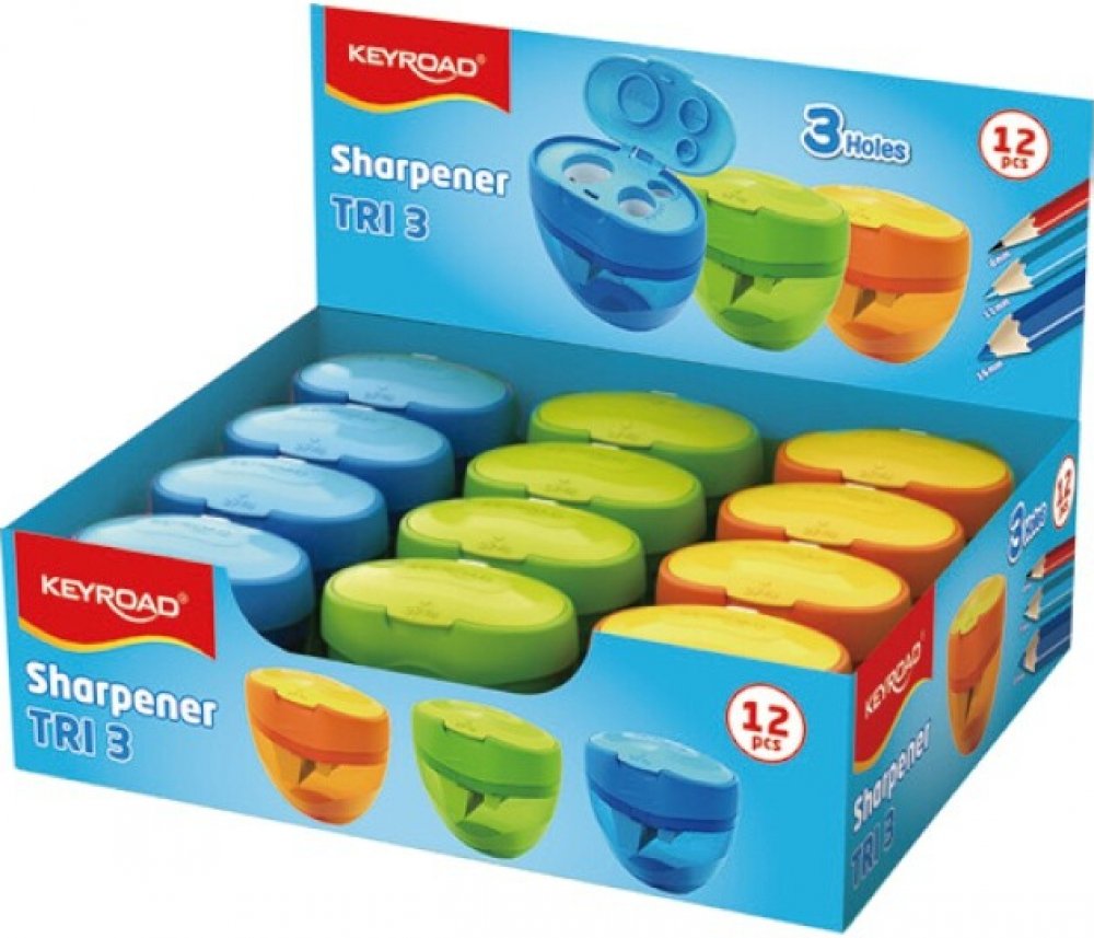 Ořezávátko s velkokapacitním kontejnerem a 3 otvory o průměru 8mm, 11mm a 16mm.