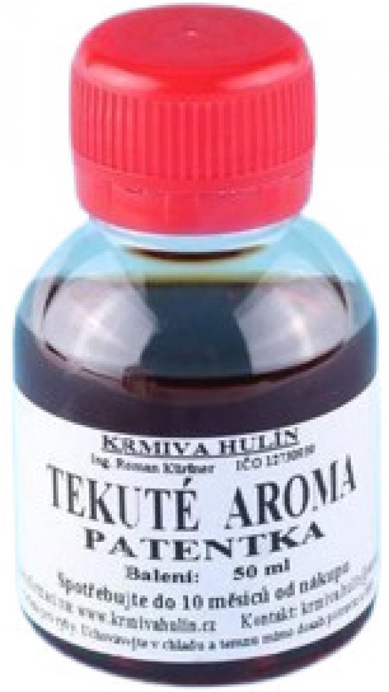 Použití: Především do rybích a masových směsí a výrobků. Aroma Patentka se dá např. smíchat s masovým a vytvářet si tak vlastní specifické aroma - každý druh ale aplikujte do směsi samostatně, neslévejte je do sebe! Přidané množství je individuální, záleží na charakteru směsi, obsahu surovin, intenzitě aromatického koncentrátu aj.